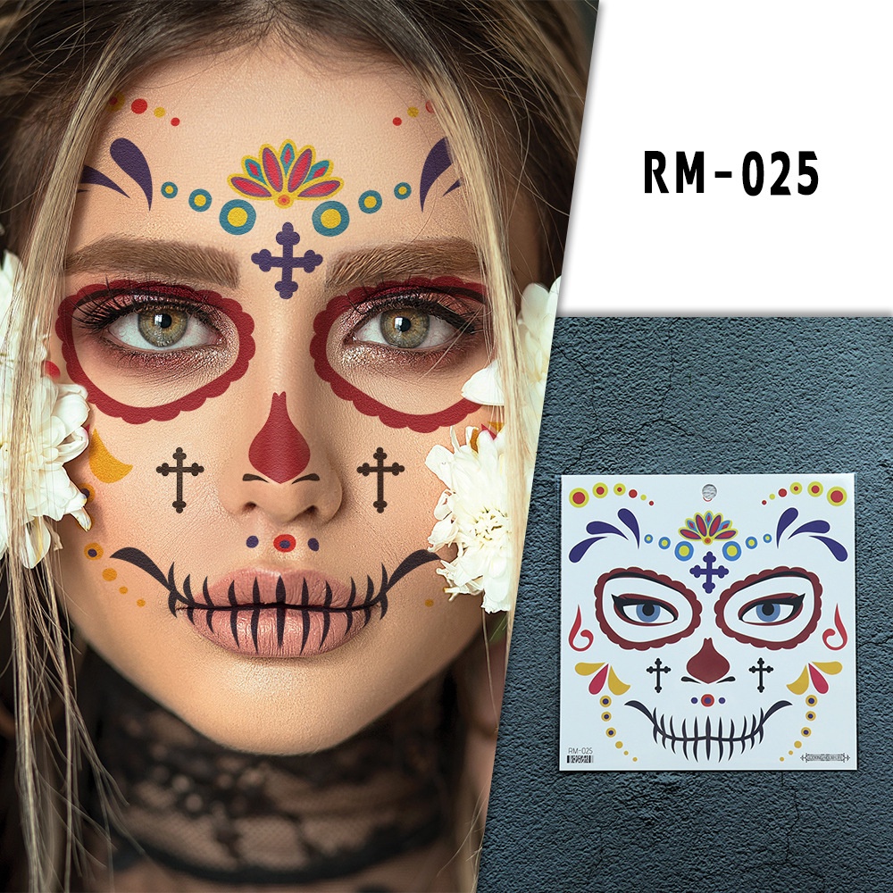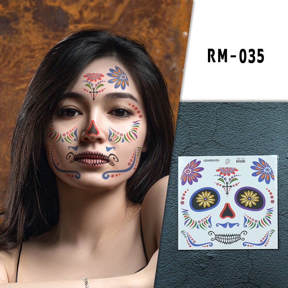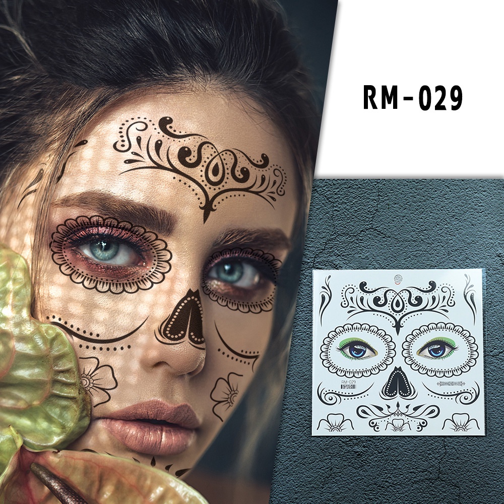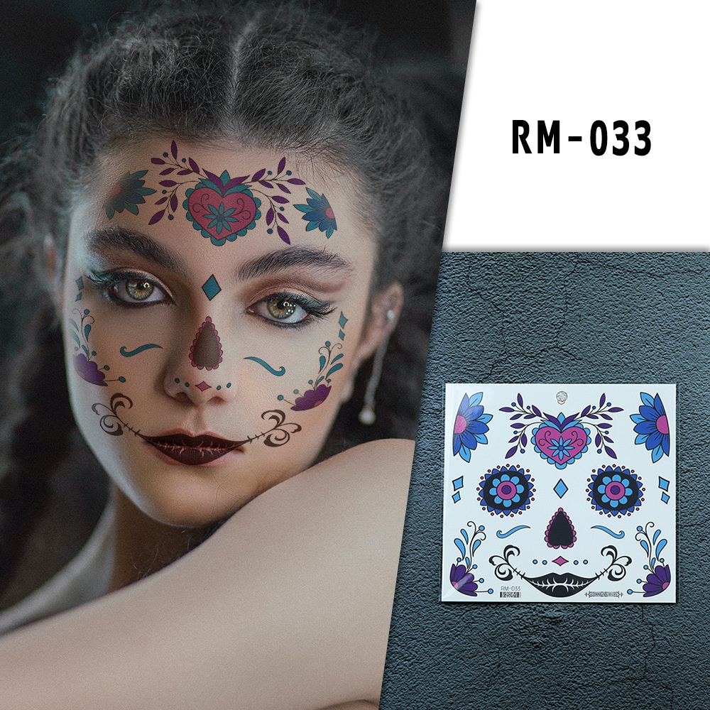 Halloween face tattoo stickers Flowers Day of the Dead waterproof tattoo paper Party makeup face stickers