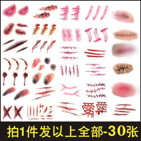 Halloween makeup fake scar tattoo stickers simulation horror lifelike knife scar stickers fake wound stickers bruise bar spoof