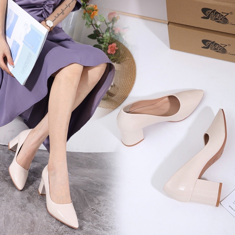 2$zq]inch,o(classic glossy leather pointed toe heels for women school offical%m_zv%shoes