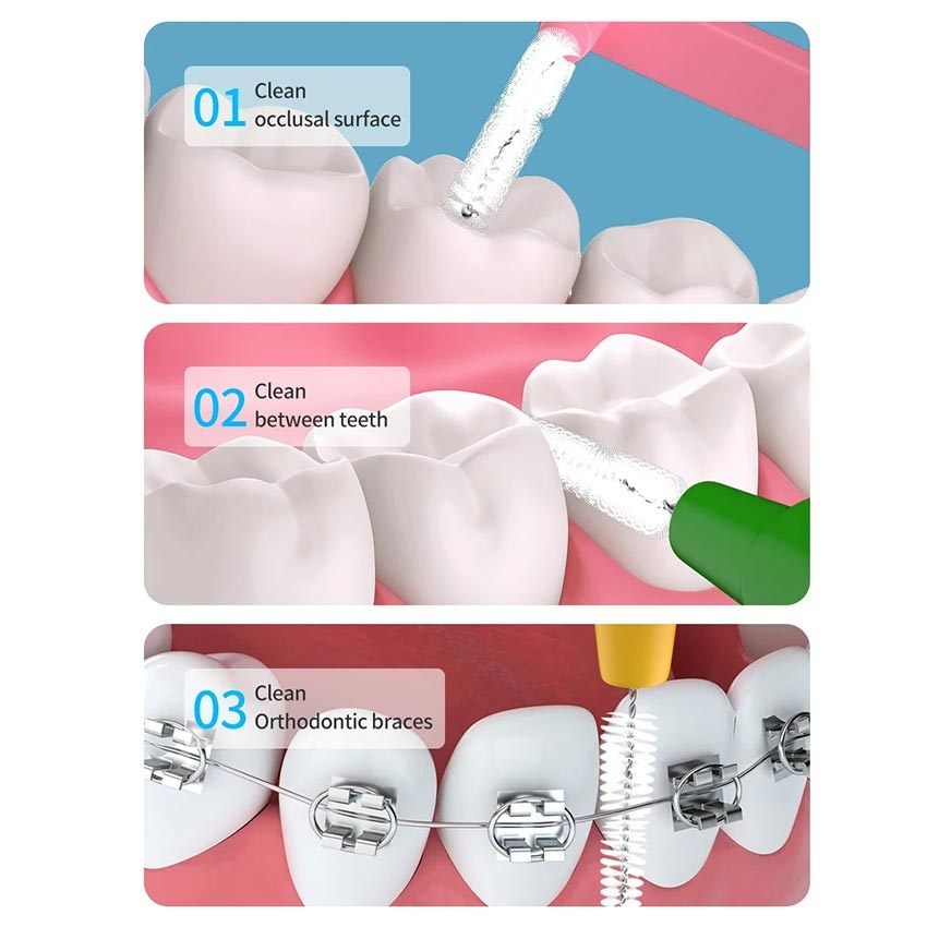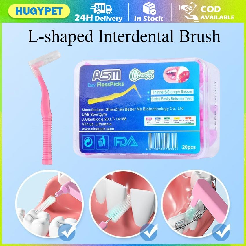 5/20Pcs L Shape Interdental Brushes Tooth Push-Pull Removes Plaque Teeth Oral Care Tool 0.6-1.5mm