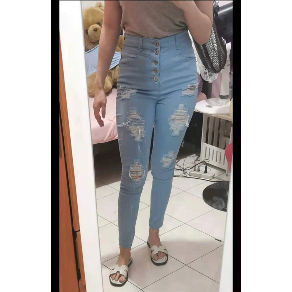 Tattered Jeans High Waist Pants for Woman Babae pantalon Skinny Jeans Stretchabke Denim COD