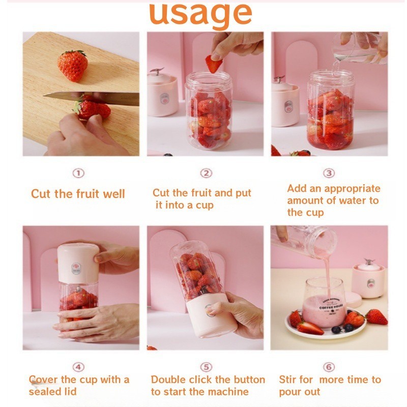 Portable Juicer Blender Fruit Juice Mixer Electric Blender USB Rechargeable Fruit Juicer Milkshake