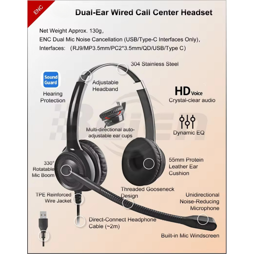 Logitech USB/3.5mm Wired Headset Call Center ENC Noise Cancelling Headphone With Microphone