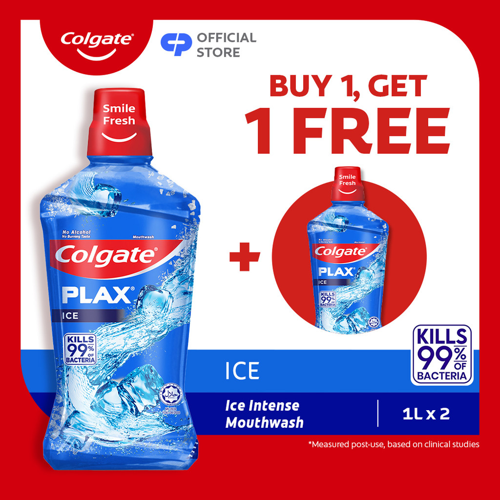 Colgate Plax Antibacterial Mouthwash Ice, No-Alcohol, Long-Lasting Freshness 1L x2
