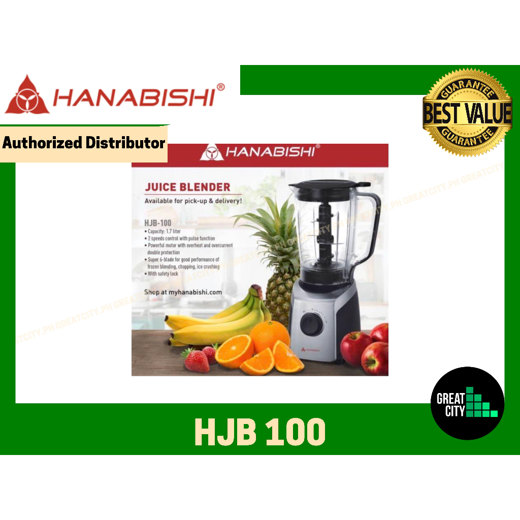 Hanabishi Blender HJB-100 1.7L Capacity Jar, Heavy Duty for Fruit Shakes, Smoothies, Juice