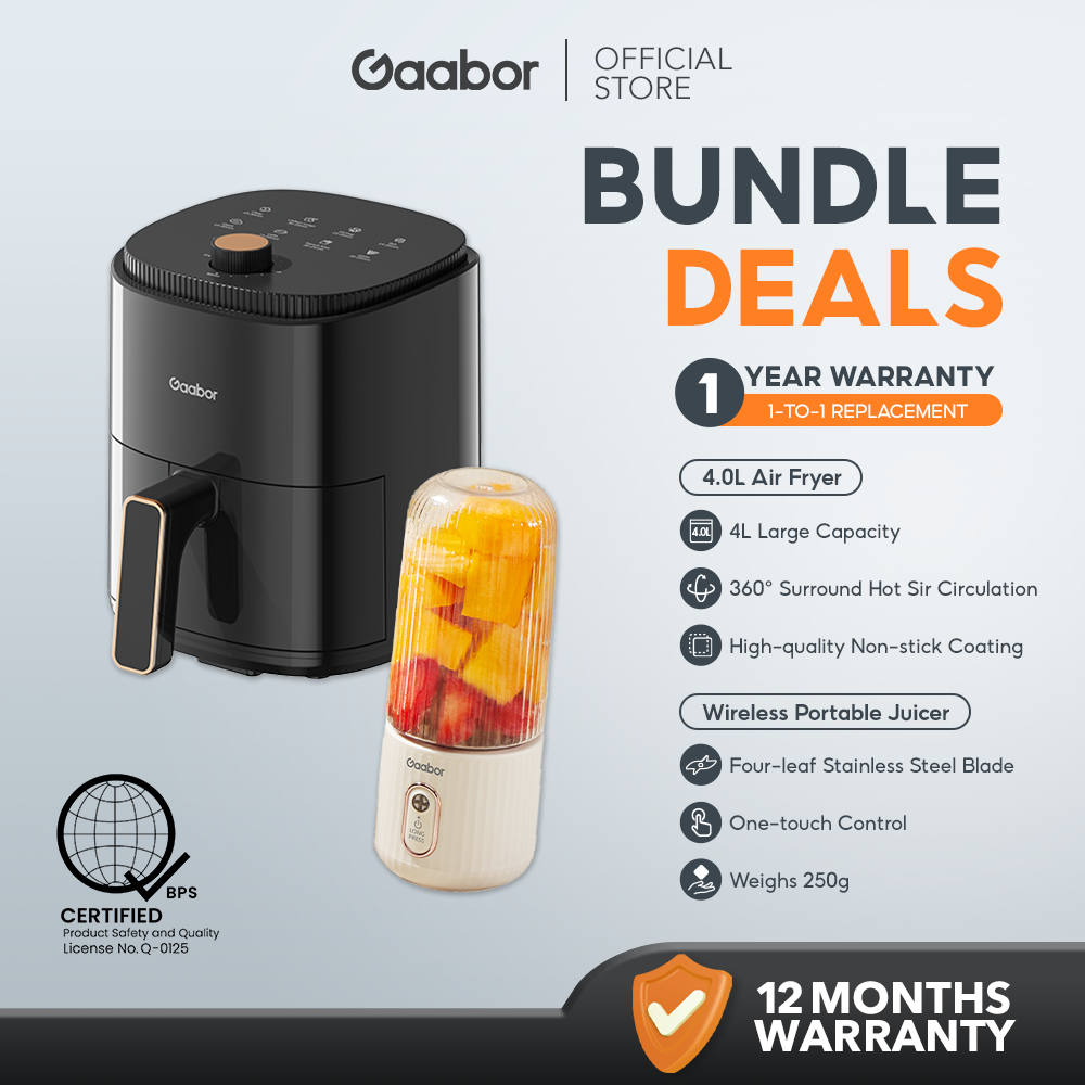 [Buy 1 Take 1]Gaabor 4L Air Fryer 8 Multi-Use Menus And 350ml&280ml Wireless Portable Juicer Blender