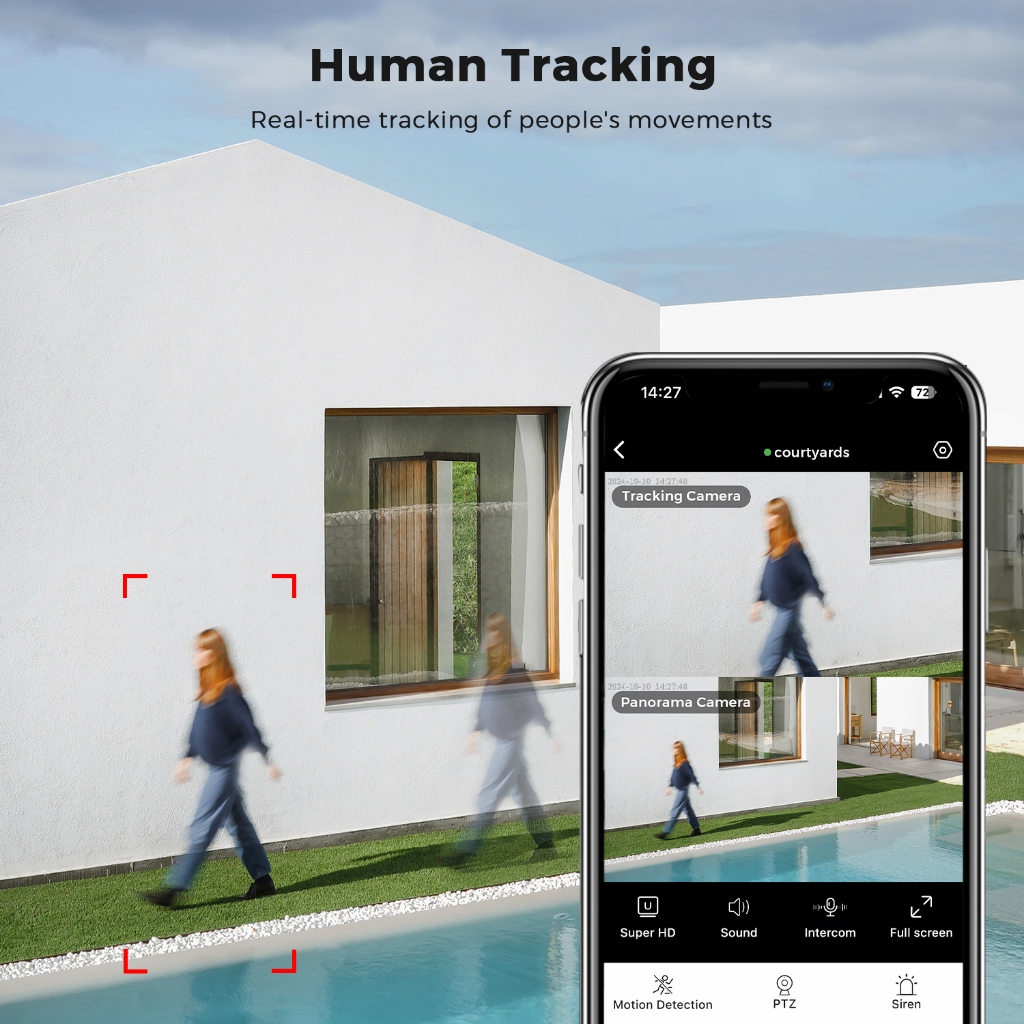 Hamrol 20MP/15MP/10MP 5G&2.4GHZ Three Lens PTZ WiFi Camera Human Tracking 10X Zoom Wireless CCTV O-KAM App