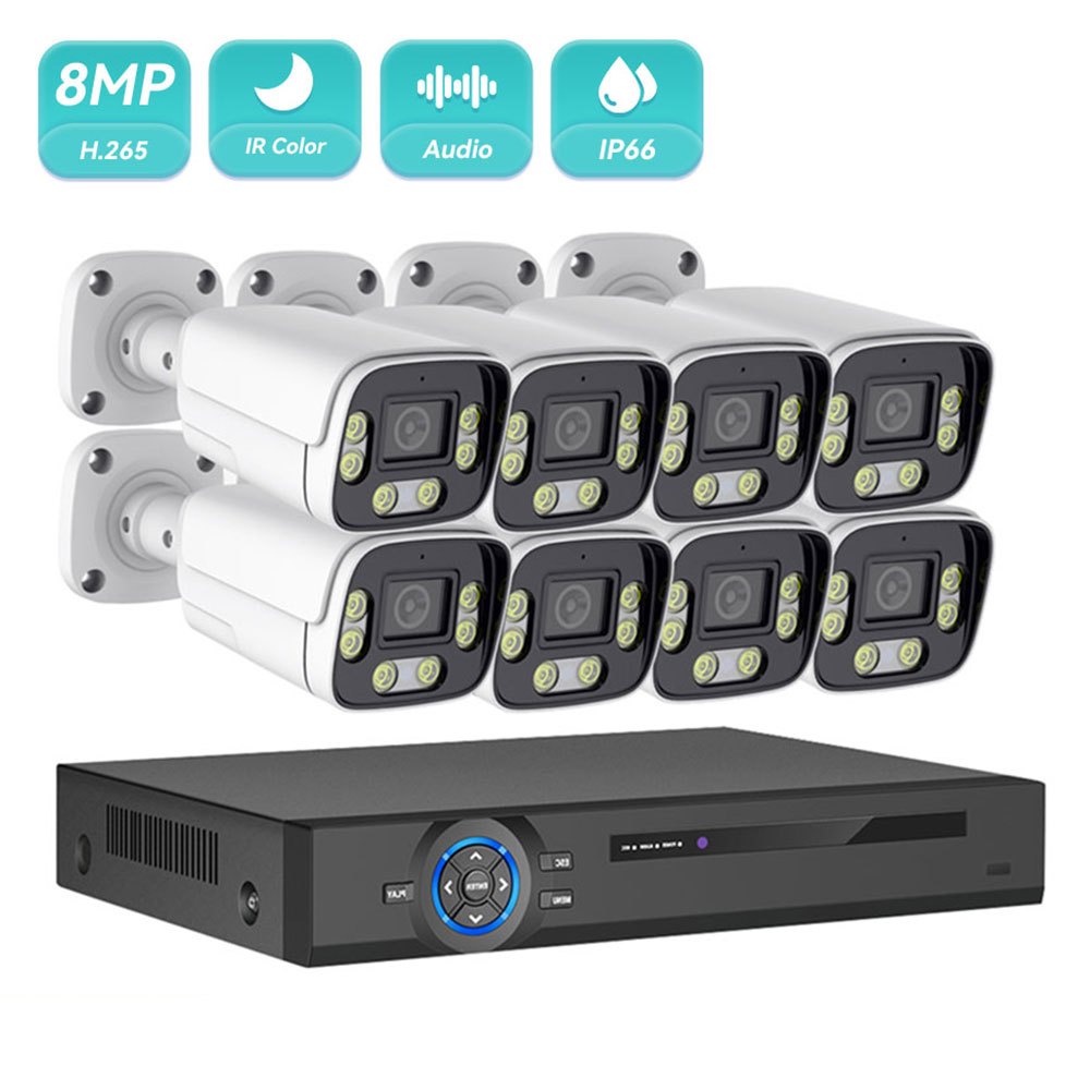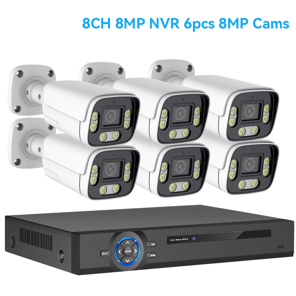Hamrol 4K 8MP POE Network Surveillance Camera Set System 6-Light Full Color Night Vision CCTV