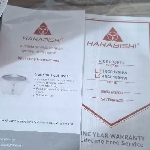 Hanabishi Automatic Rice Cooker 1.8 liters (HRC0180HW)