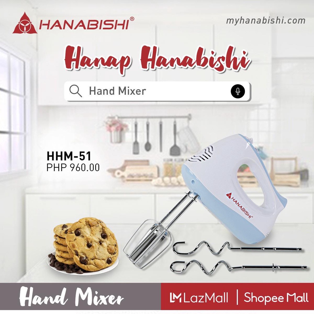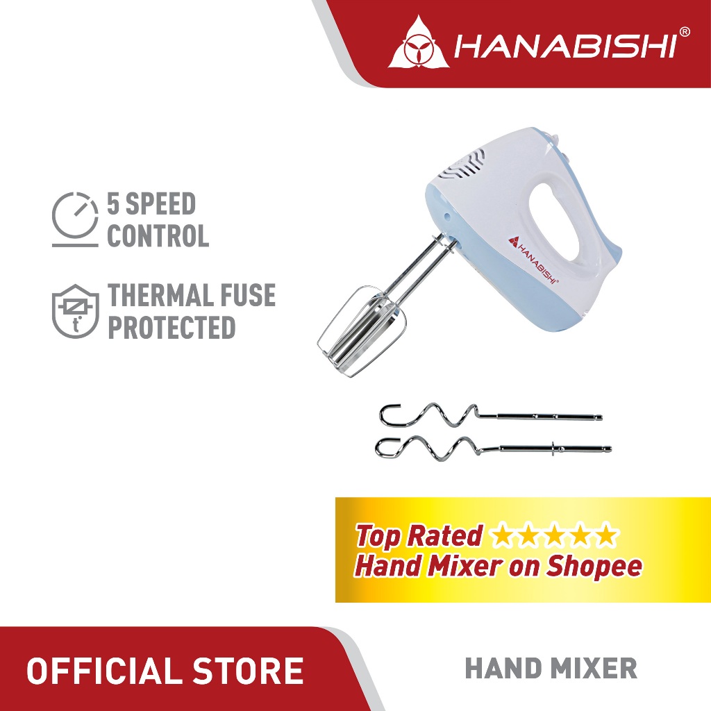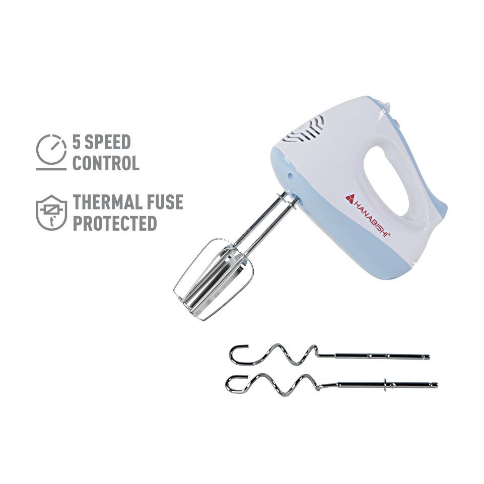 Hanabishi Hand Mixer HHM51 | Best for Baking 5-speed | Beater, Dough Hooks | Turbo