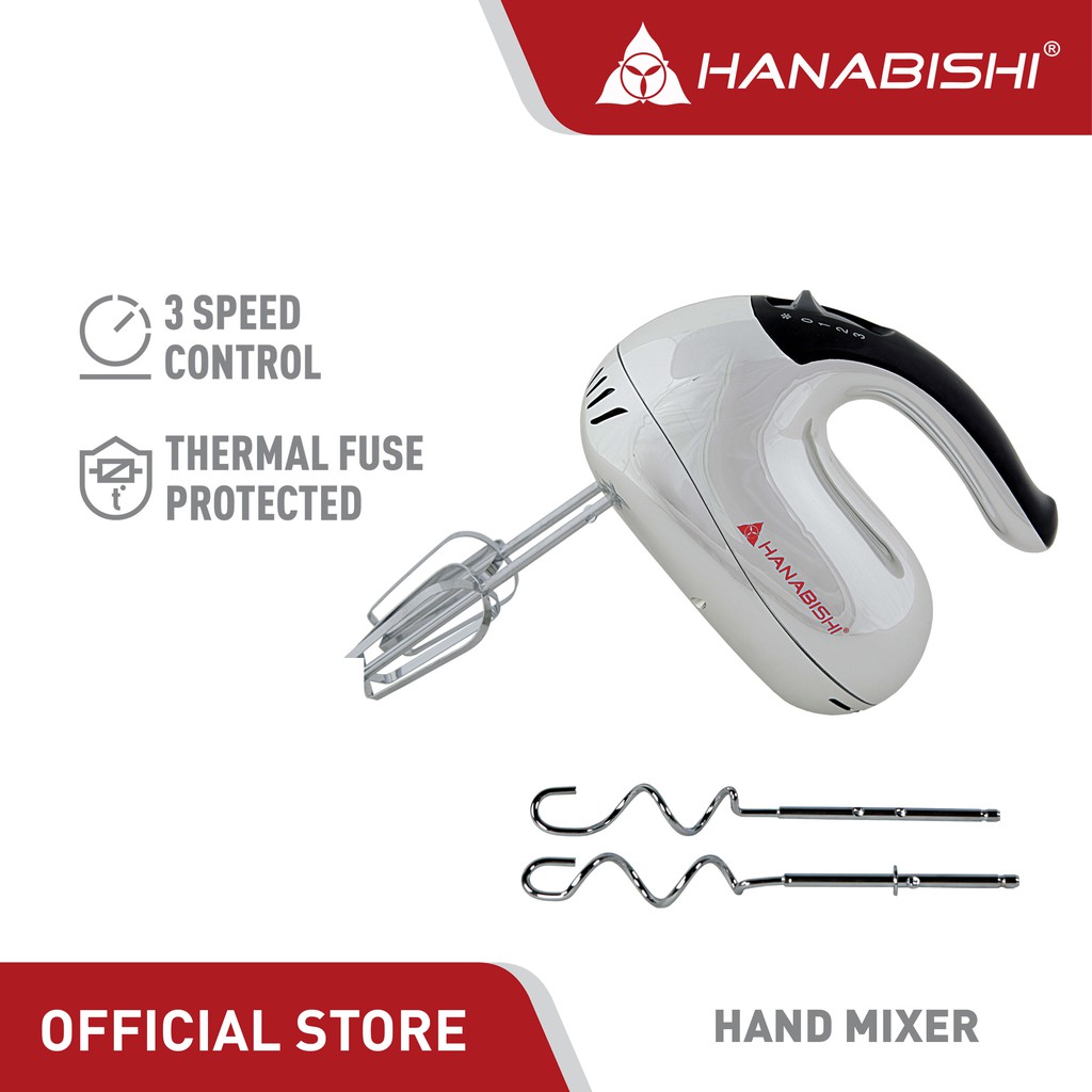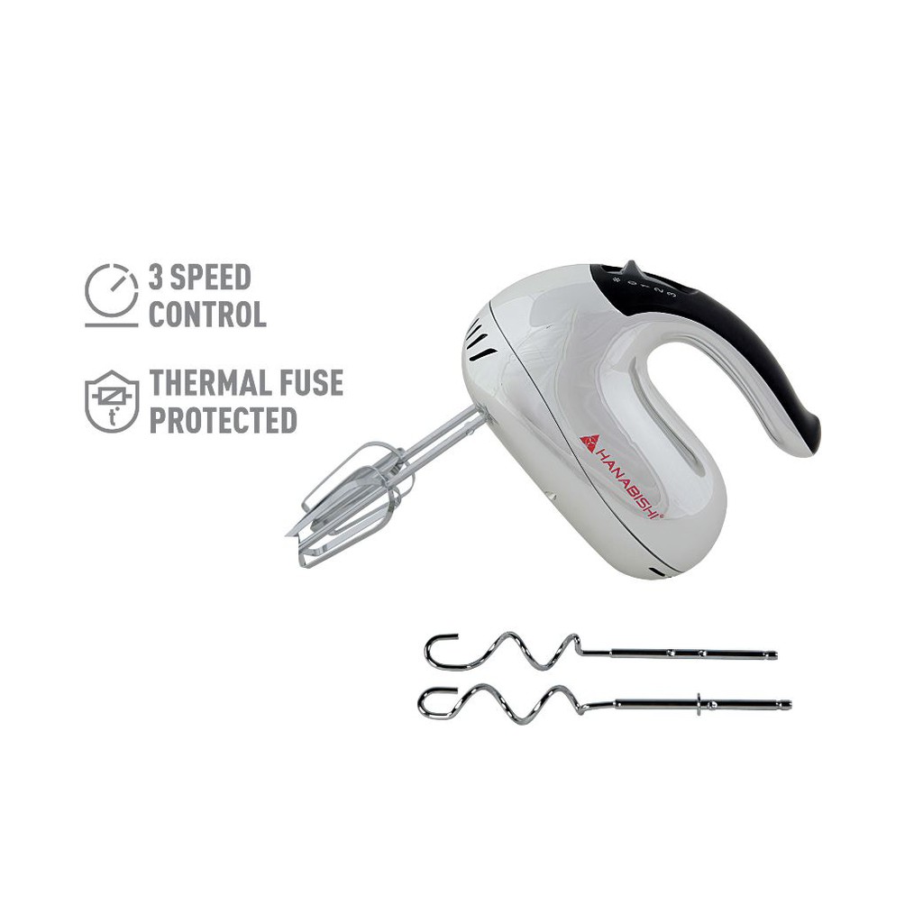 Hanabishi Hand Mixer HHM53SS | Best for Baking 3-speed with Pulse function | Beater, Dough Hooks |