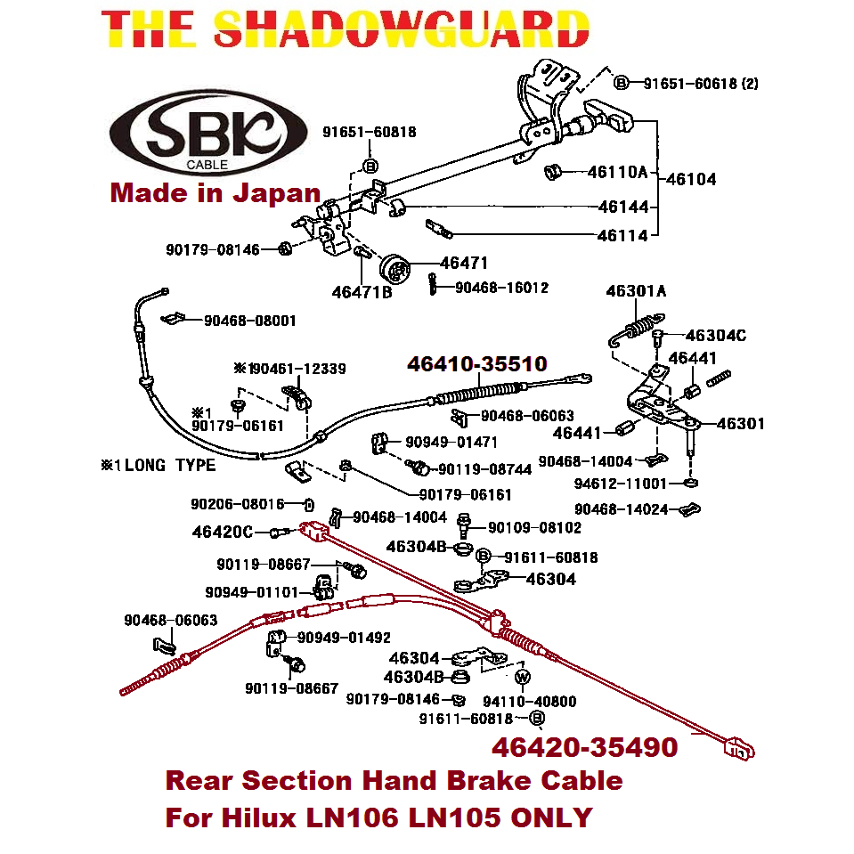Hand Brake Cable Rear Assembly Hilux LN105 LN106 4x4 Pick Up ONLY Made In Japan