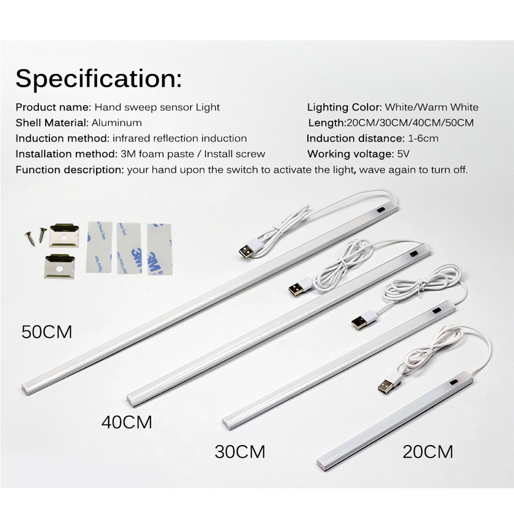 Hand Wave Control Kitchen Lights USB LED Tube Bulb Closet Wardrobe Bar LED Lamp 30/50cm Motion Sensor Hand Scan Sweep Kitchen Lights