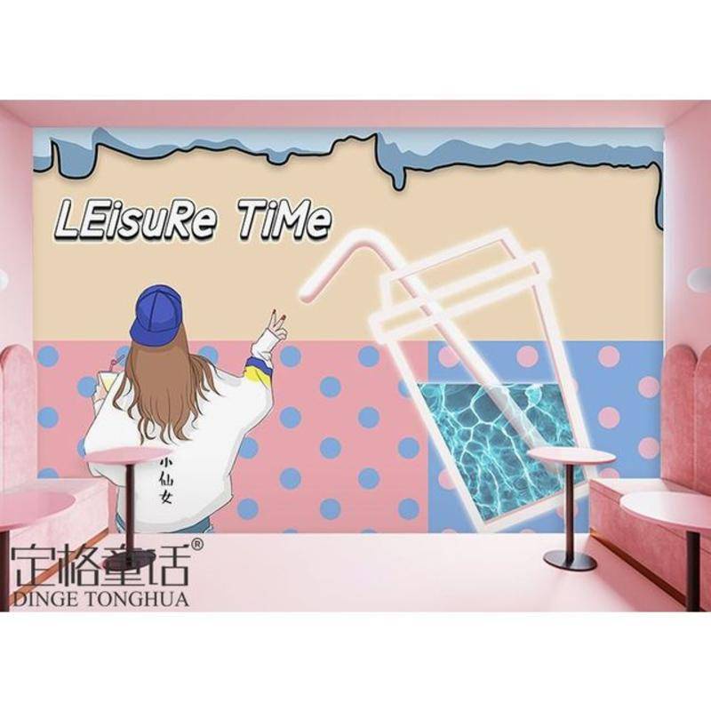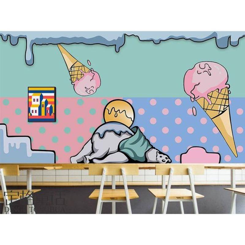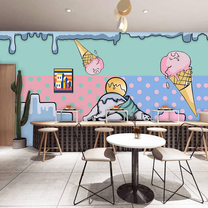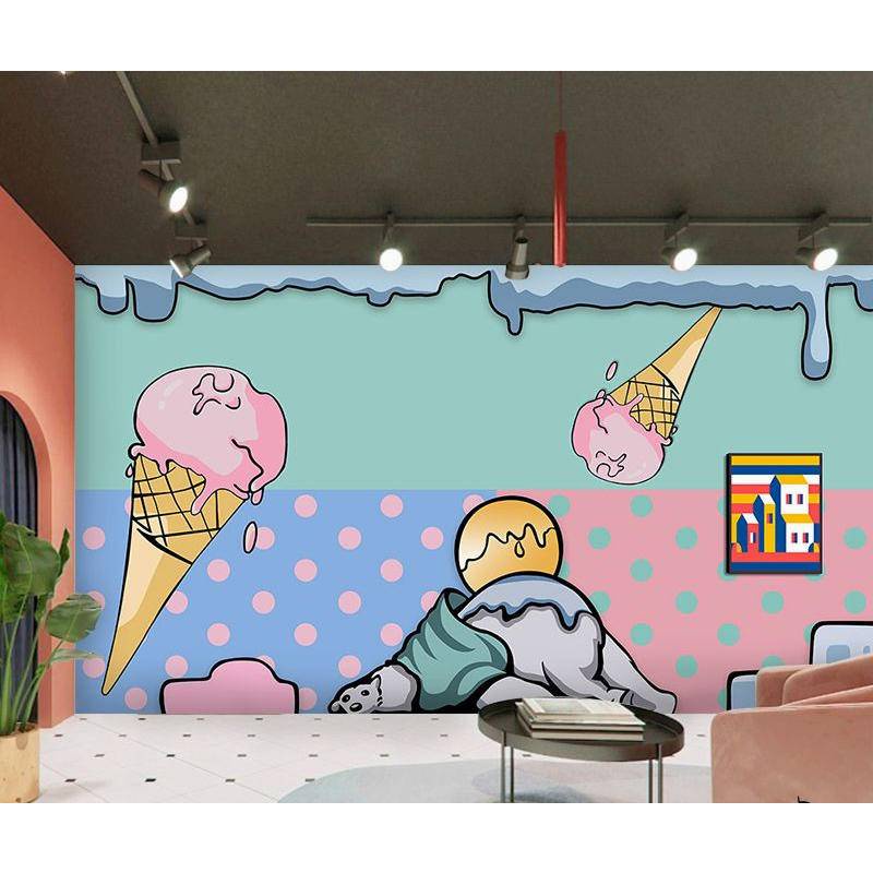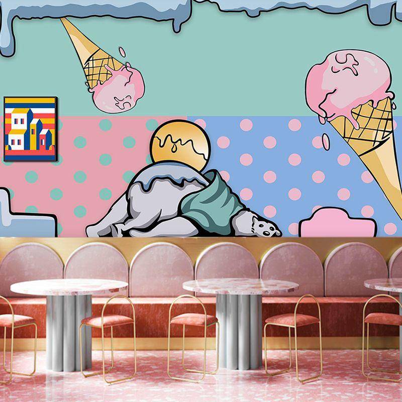 Hand-painted Cartoon Ice Cream Polar Bear Custom Mural Milk Tea Ice Cream Shop Background Wall Industrial Decor wallpaper