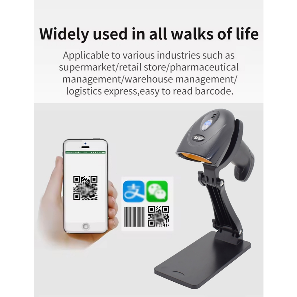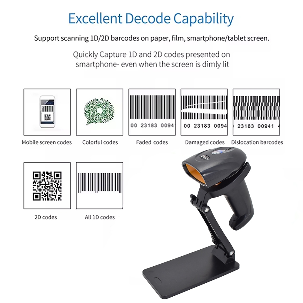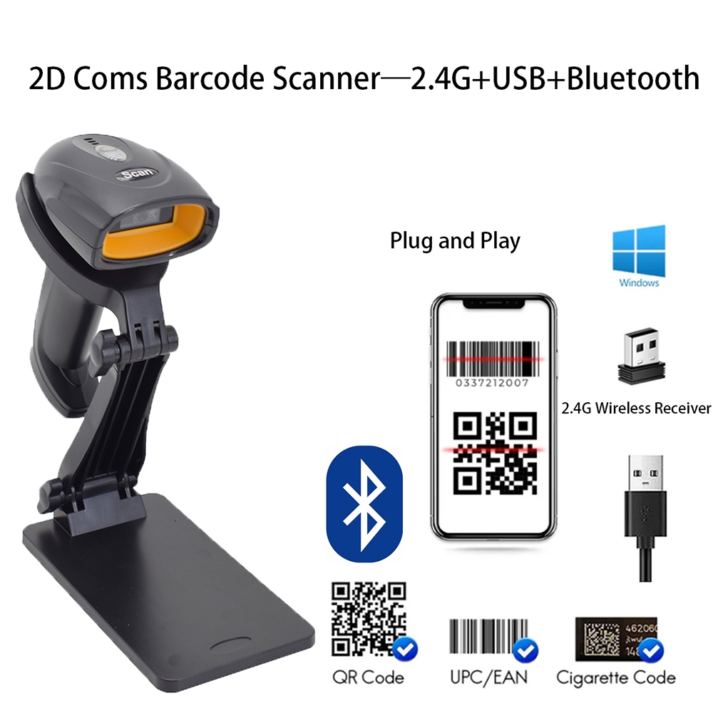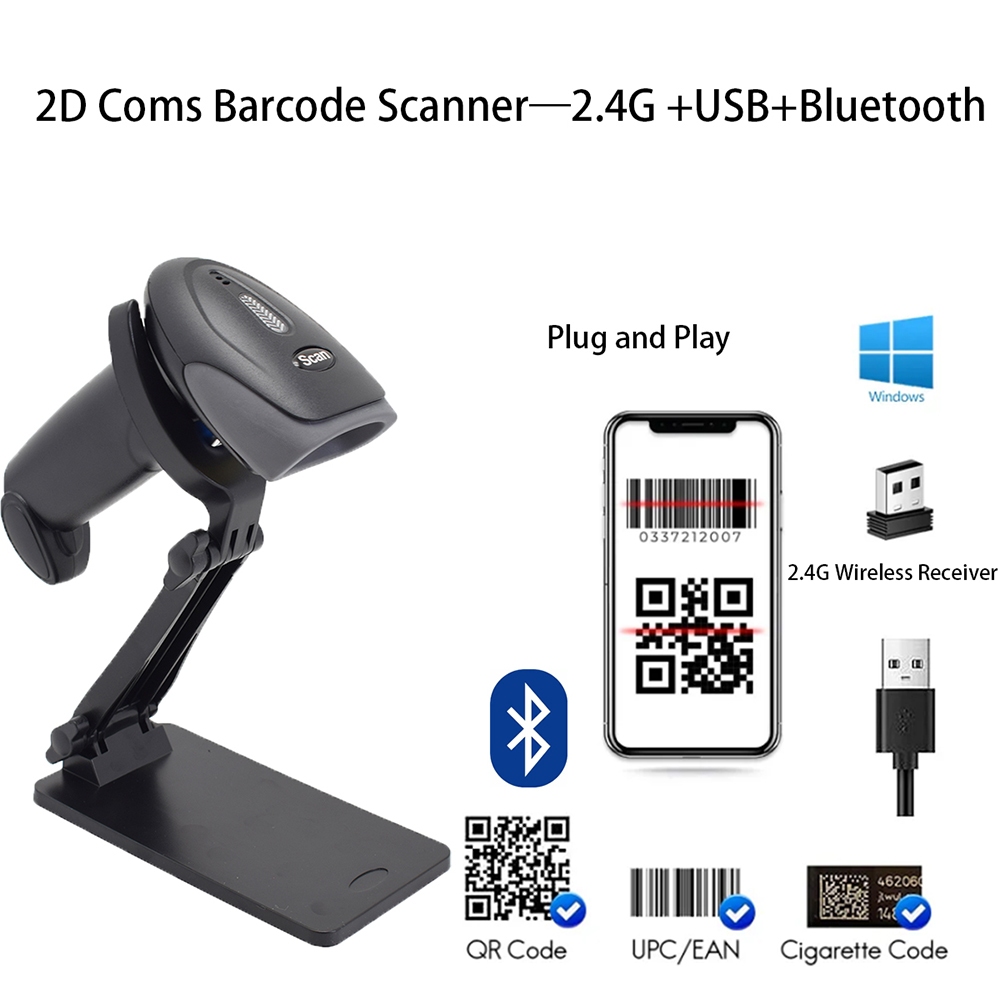 Handheld 2D Barcode Scanner with Stand USB Wired 2.4G Bluetooth Wireless Scanner Automatic scanning For Pos QR Code Reader