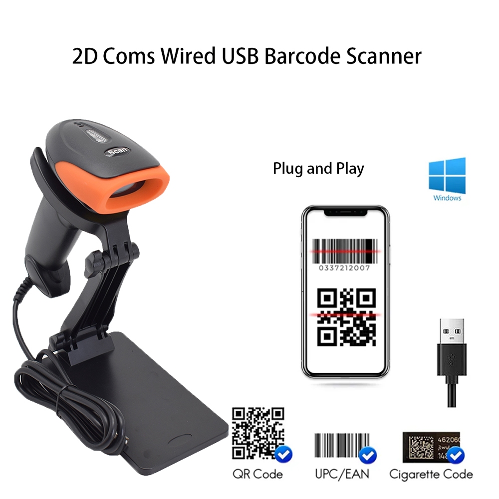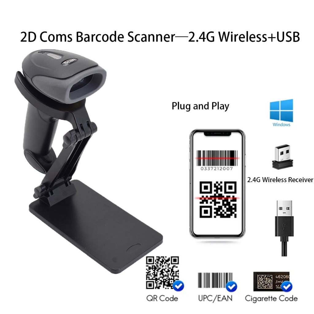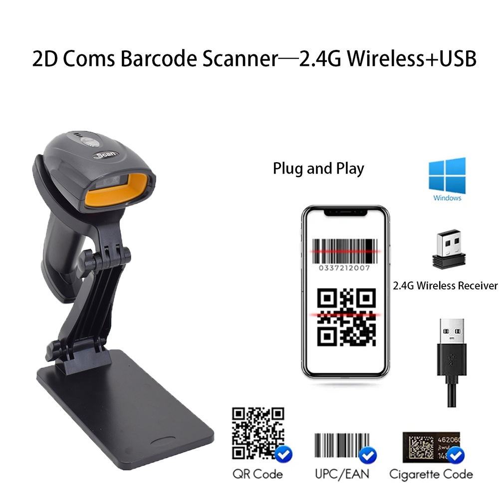 Handheld 2D Barcode Scanner with Stand USB Wired 2.4G Bluetooth Wireless Scanner Automatic scanning For Pos QR Code Reader