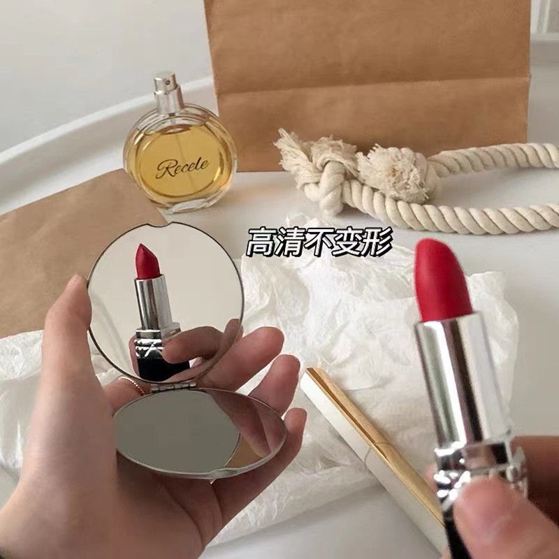 Handheld Double-Sided Small Mirror Female Stainless Steel Foldable Makeup Mirror