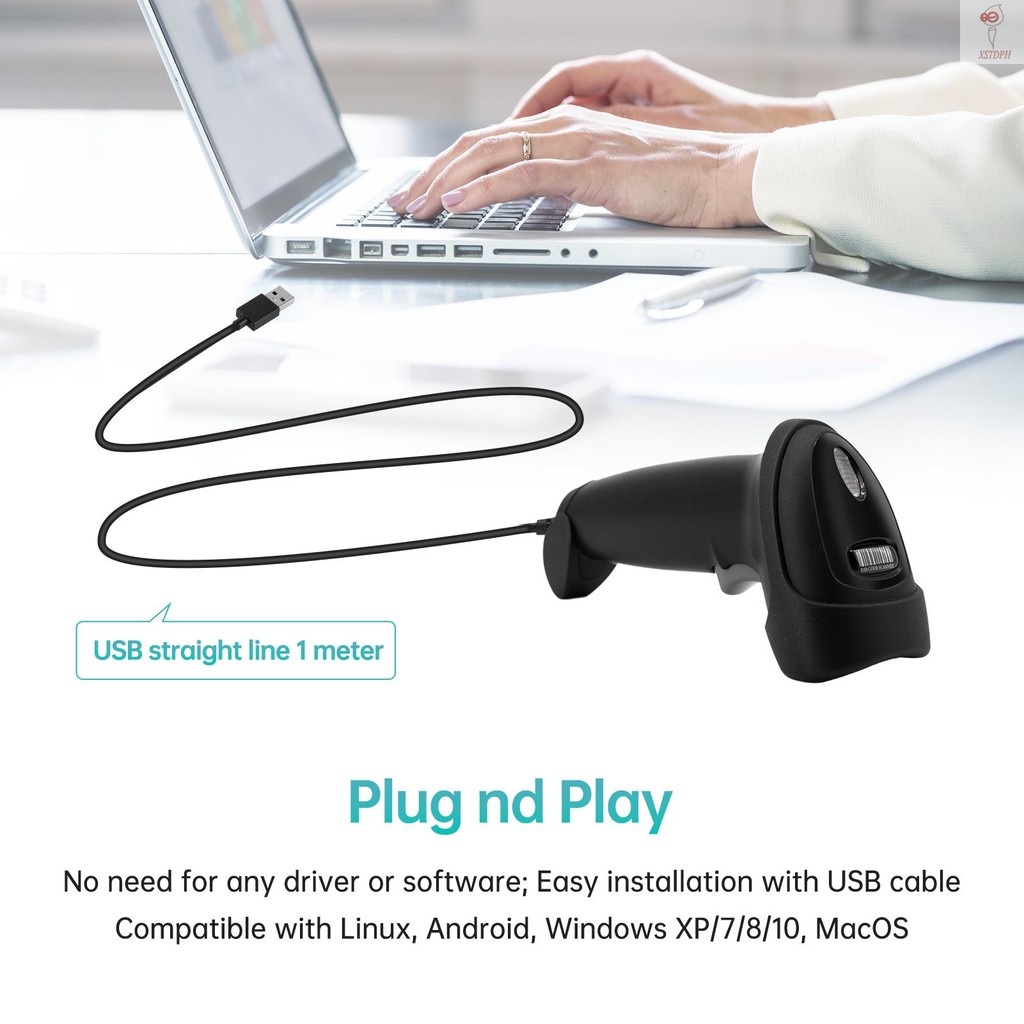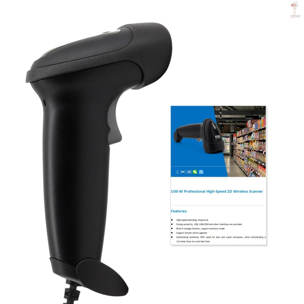 Handheld USB 2D 1D Barcode Scanner COMS Sensor High-speed Scanning QR Code Reader Plug and Play Support Auto-sensing/Continuous Scanning Long USB Cable for Mobile Payment Suitable