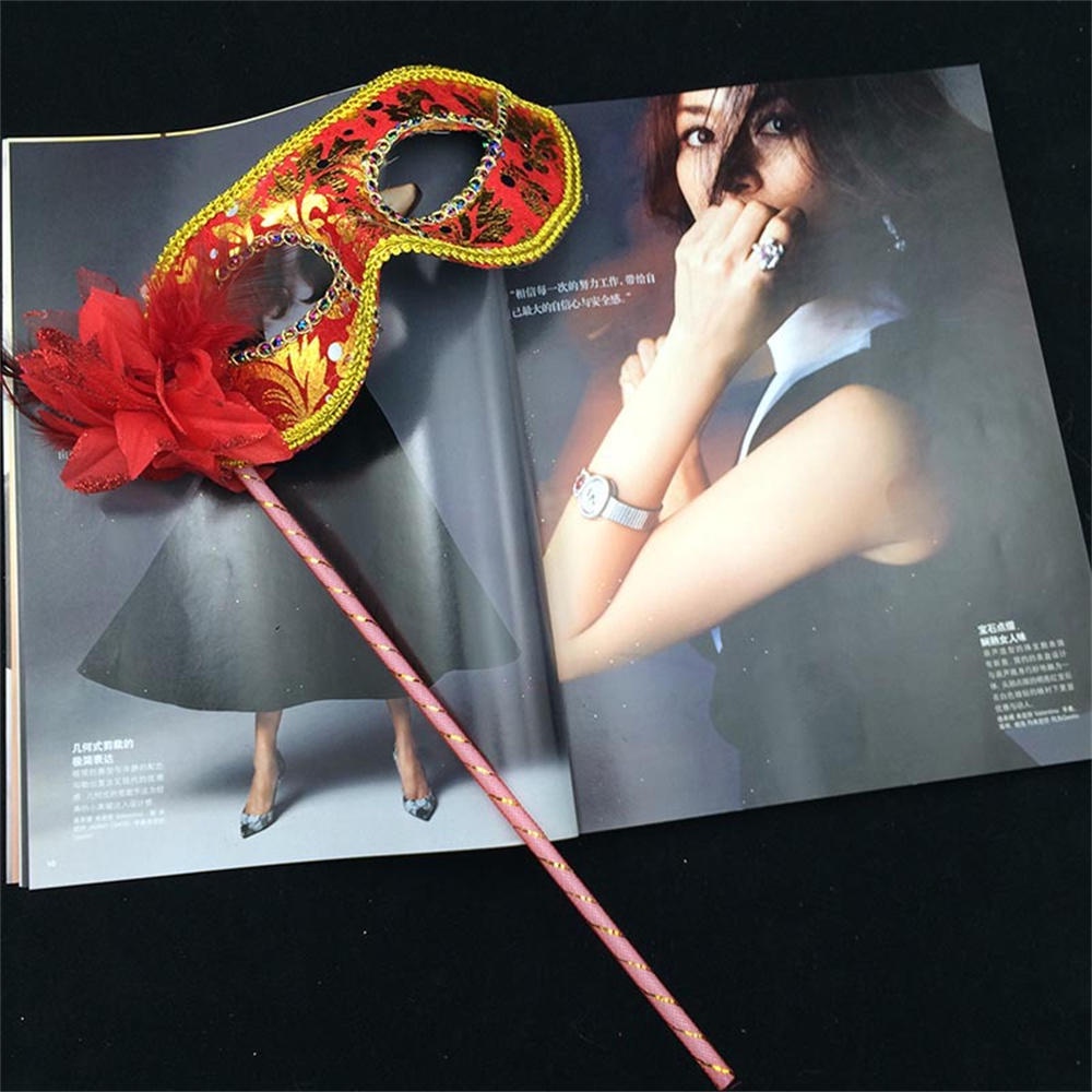 Handheld Venetian Masquerade Masks Masquerade Removable Side Flower Sequin Half Face Mask Venice Eyepatch Party Mask With Holding Stick