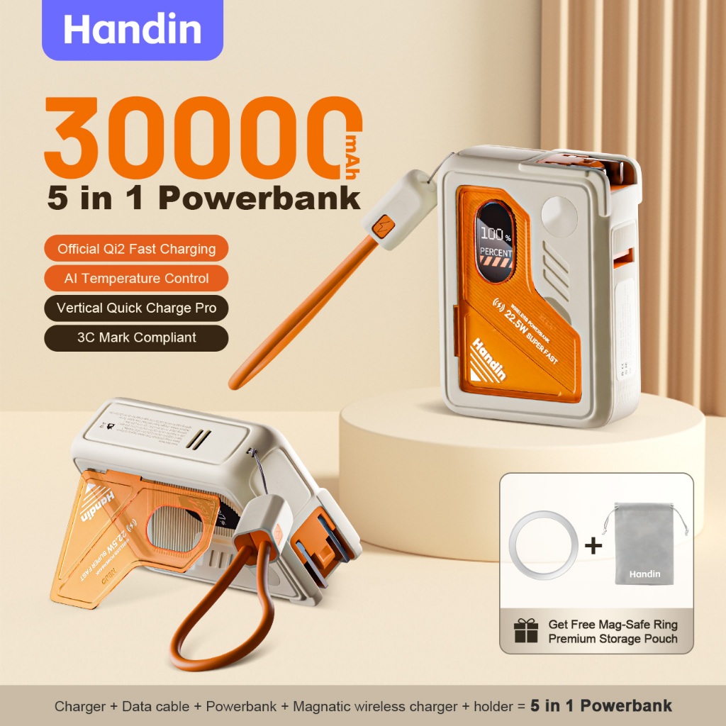Handin 30000mAh Magnetic PowerBank 35W Fast Charging With LED Digital Display Built In Type-C Cable