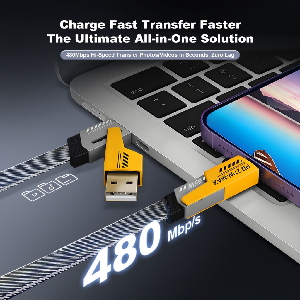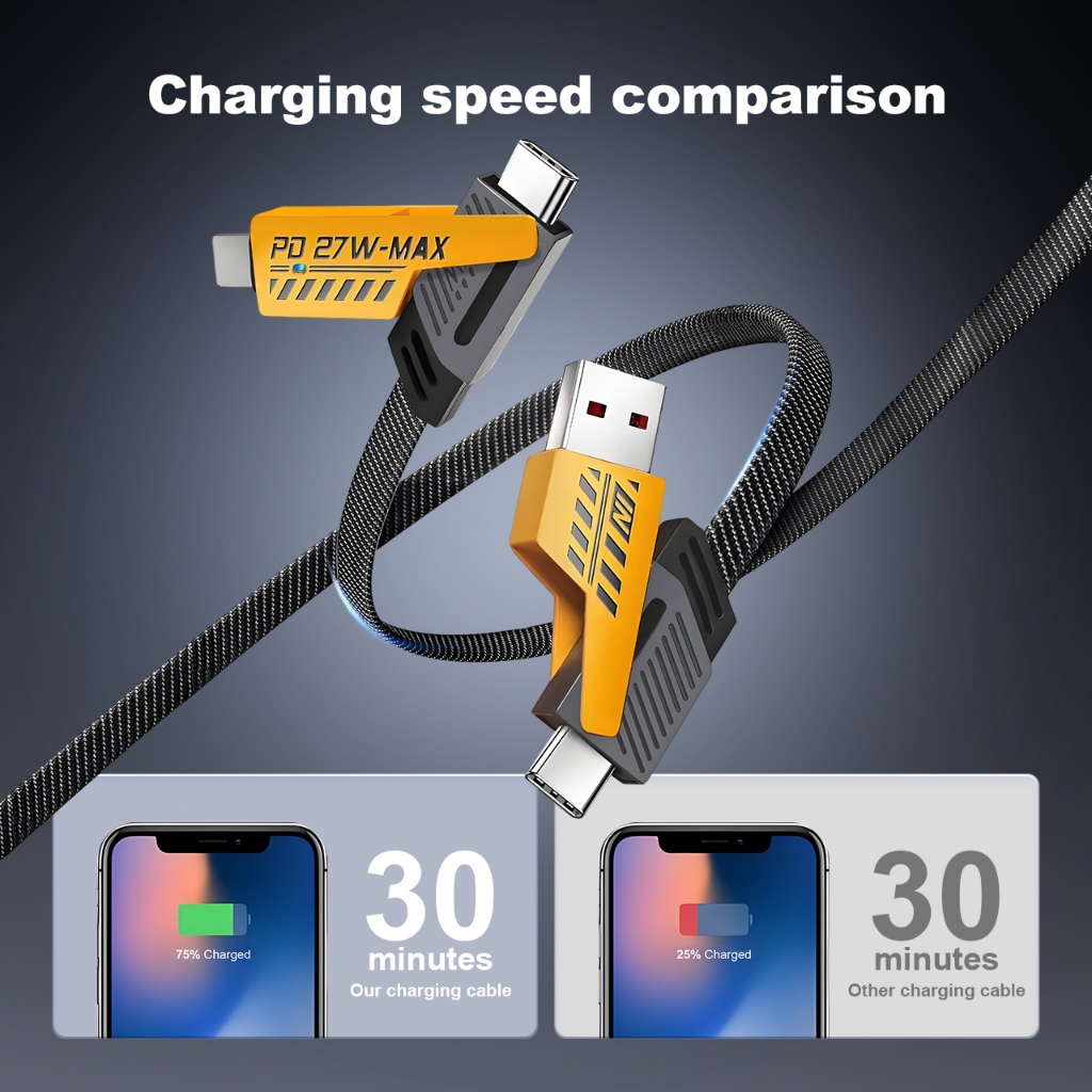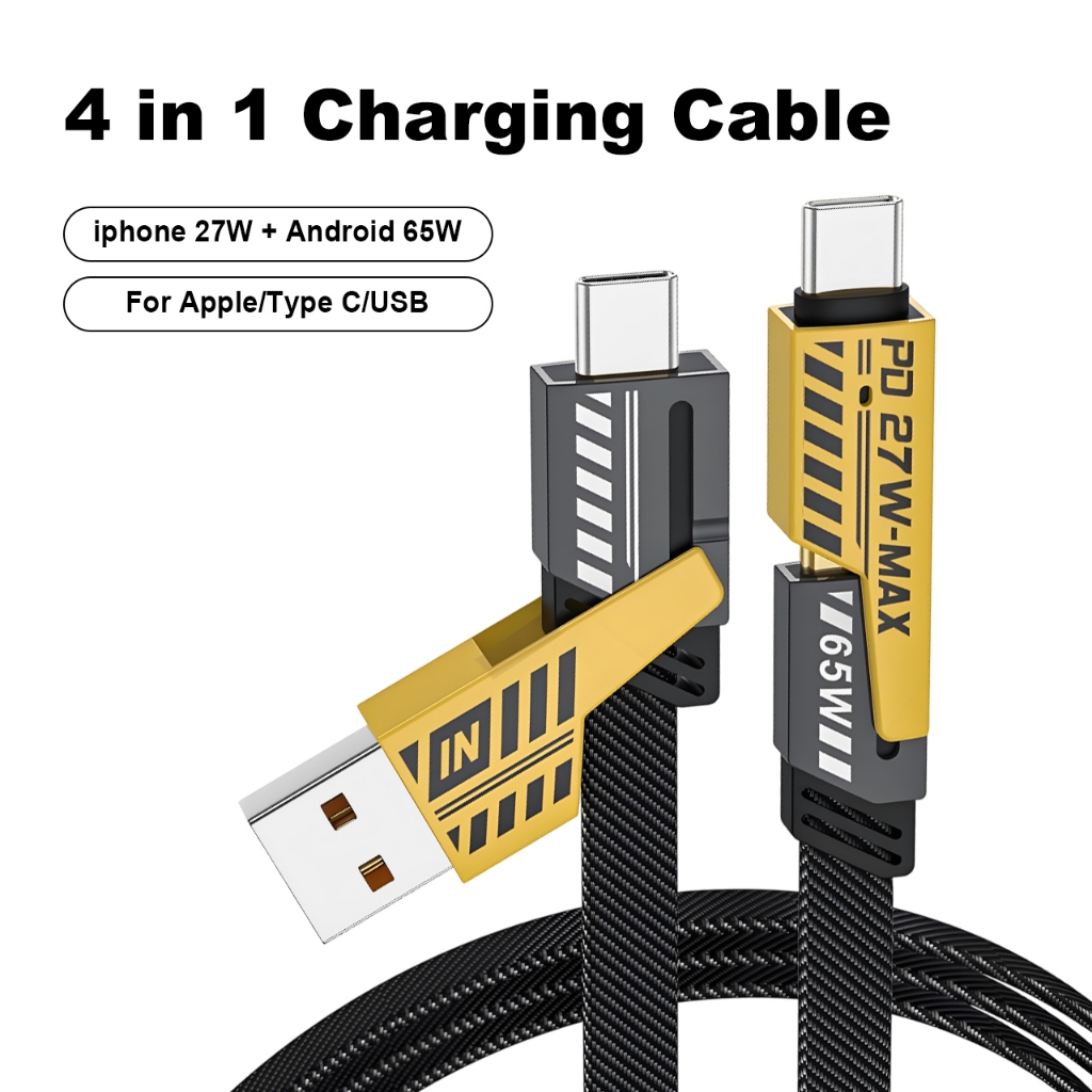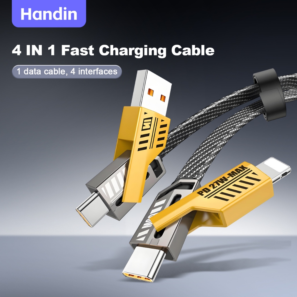 Handin 4in1 65W Fast Charging Cable Cord Usb Type C Charger Cable Multi Port Multiple Usb Wire line
