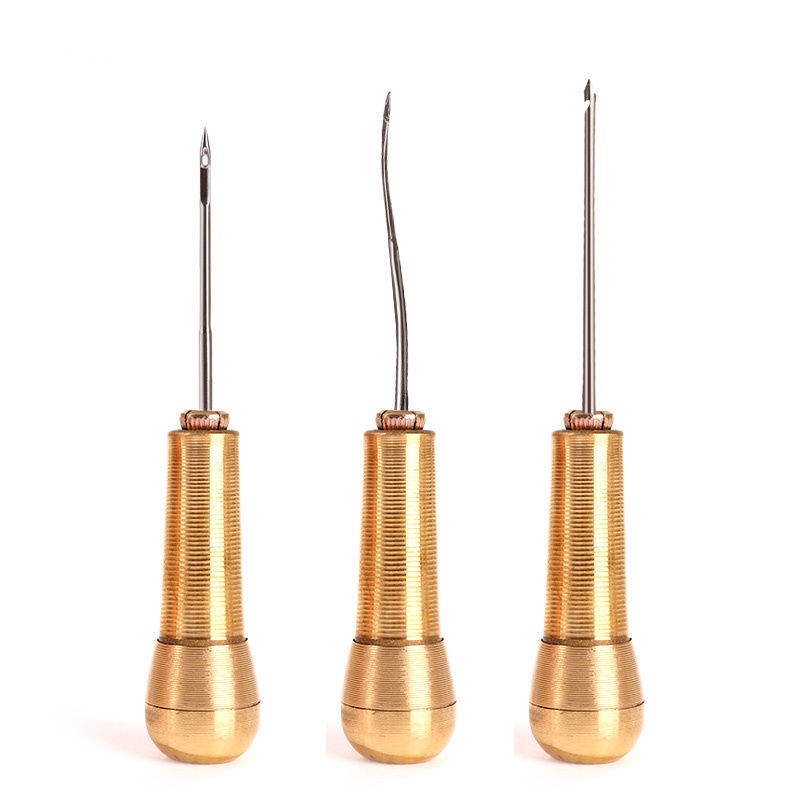 Handle Shoes Repairing Awl Leather Shoe Sewing Cobbler Tool Sewing Stitching Awl Needle Set with Hook Awl Needle DIY Old Crochet