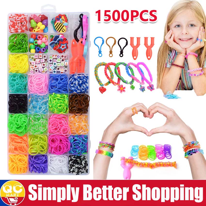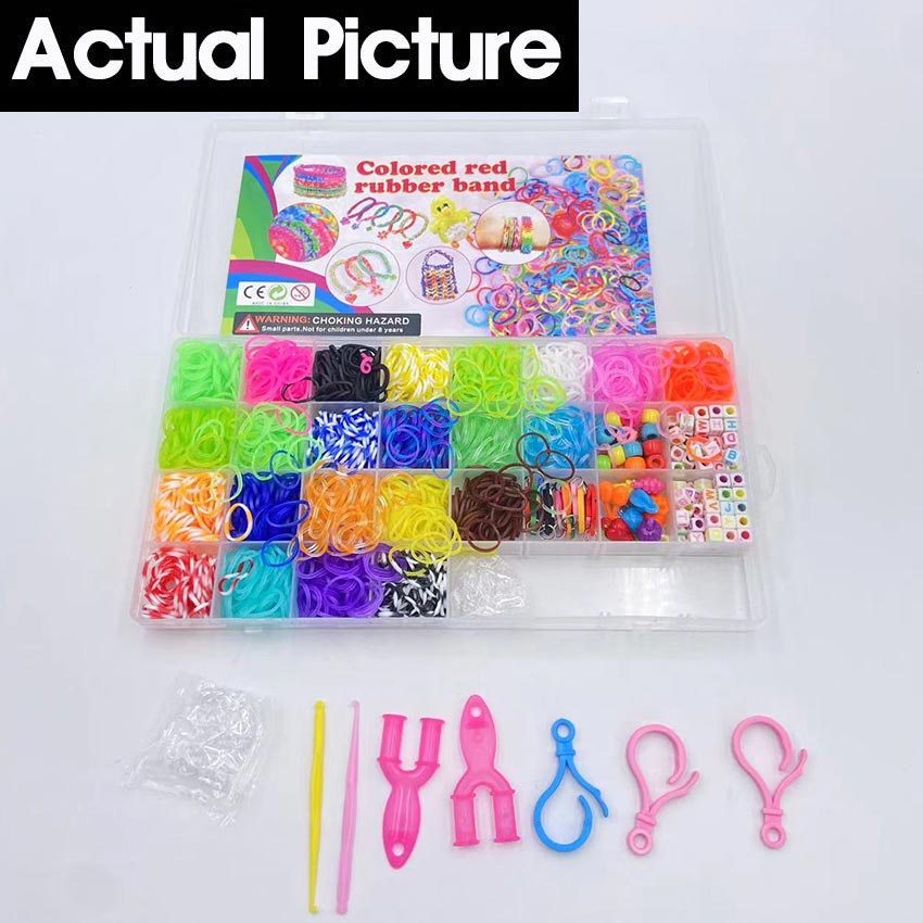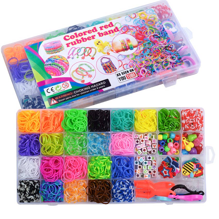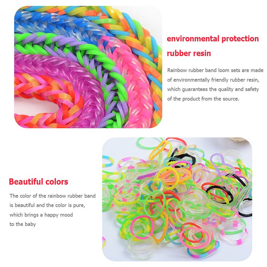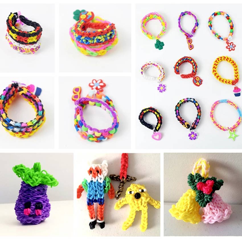 Handmade Bracelet Keychain Making Kits Rainbow Rubber Loom Bands DIY Toys For Girls Craft Toy