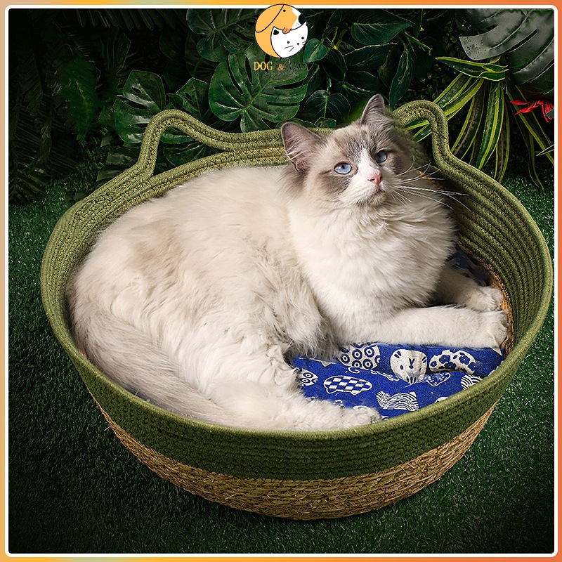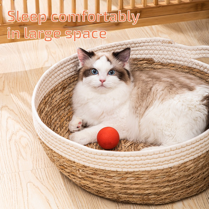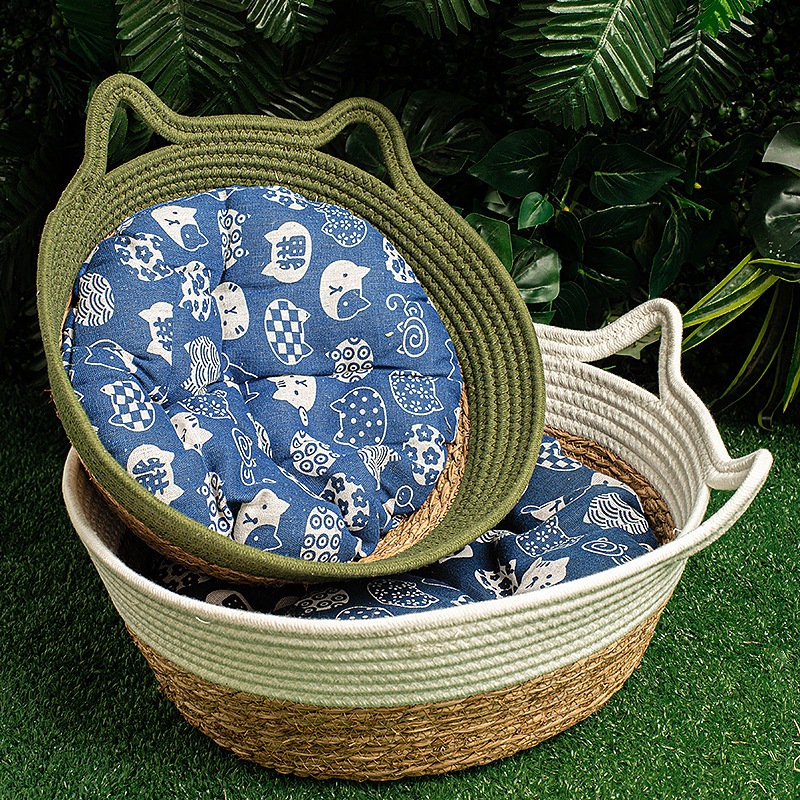 Handmade Rattan Pet Nest Washable Manual Rattan Cat Bed Woven Washable Breathable Cool Cat House