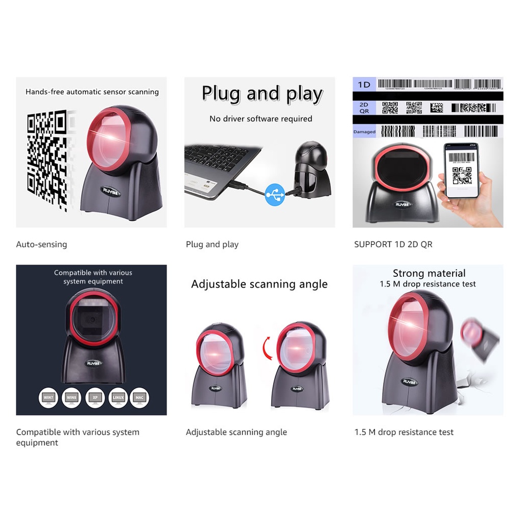Handsfree Barcode Scanner 2D Desktop Barcode Reader Platform QR Code Scanner Automatic Bar Code