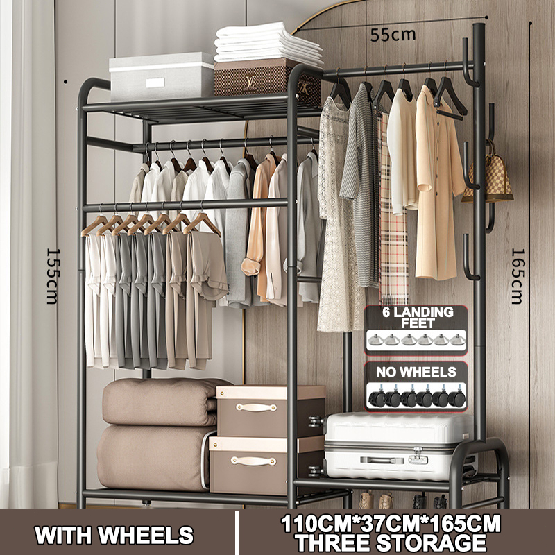 Heavy Duty Clothes Rack Bedroom Clothes Hanger Rack Metal Clothes Drying Rack