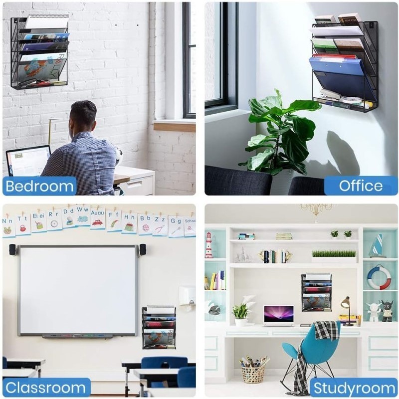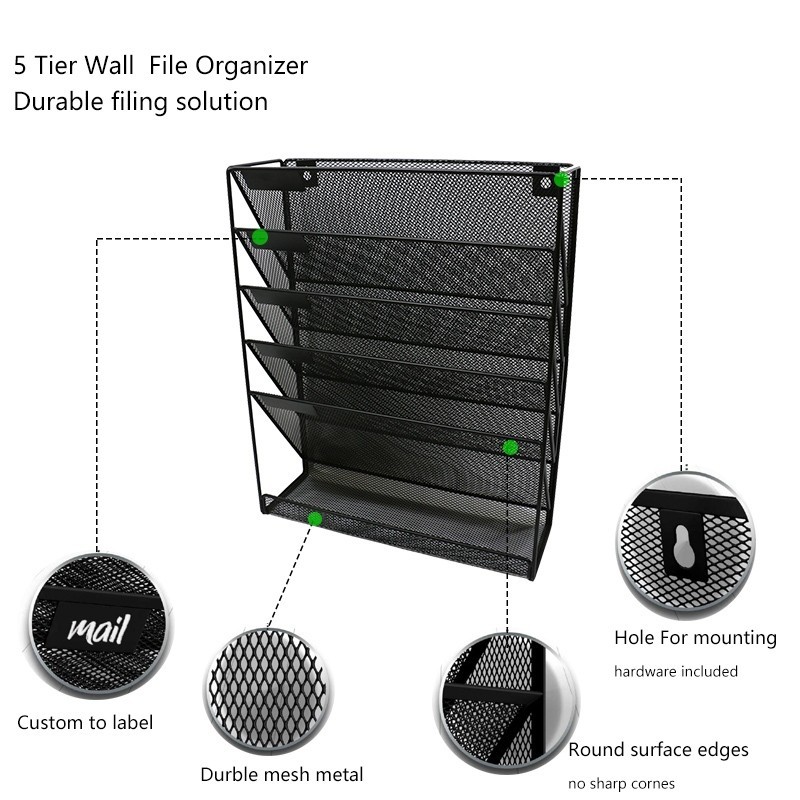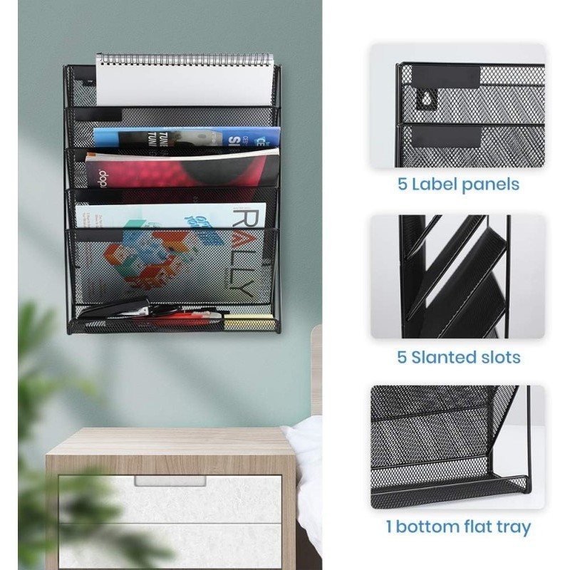 Hanging File Rack Mesh Metal Wall-Mounted File Holder Magazine Tray Organizer Practical Desk Storage