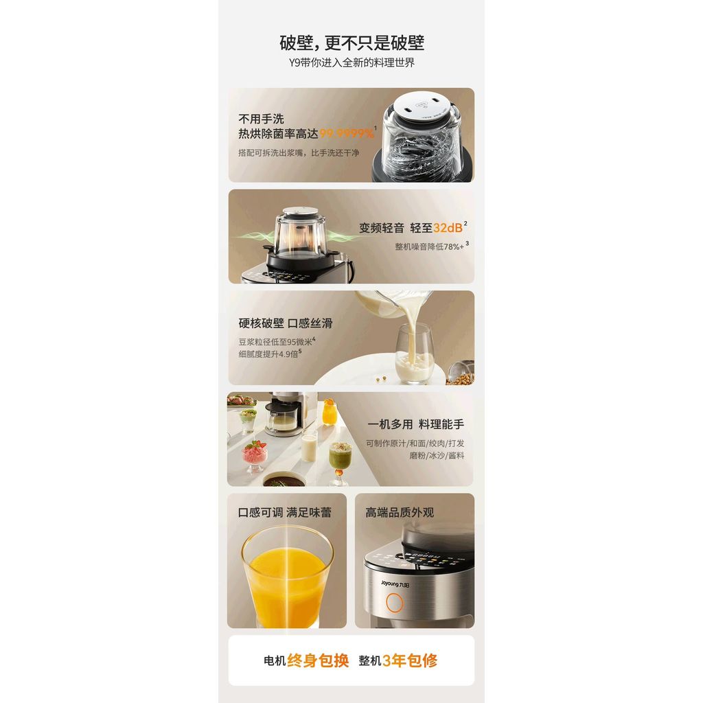 Joyoung No Hand Wash Frequency Conversion Wall Breaker Heating Multifunctional Household Automatic Soy Milk Cuisine Flagship New Product Y9