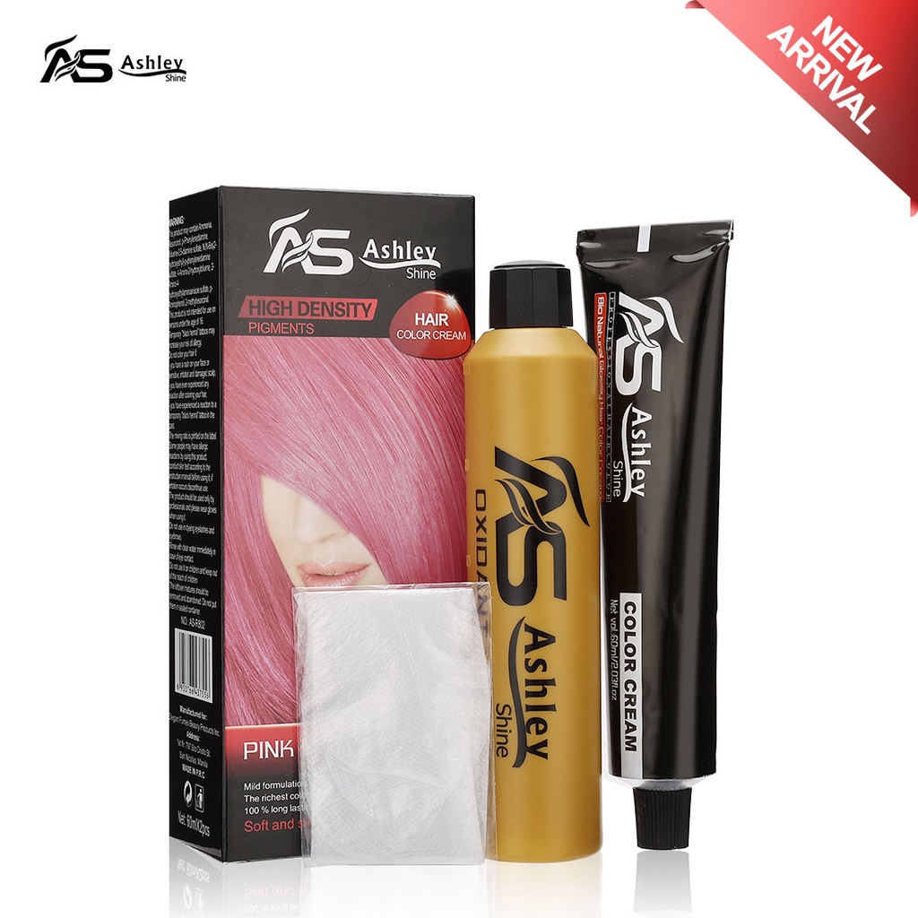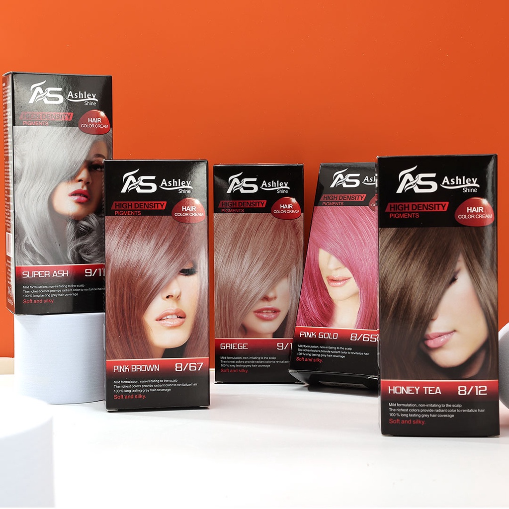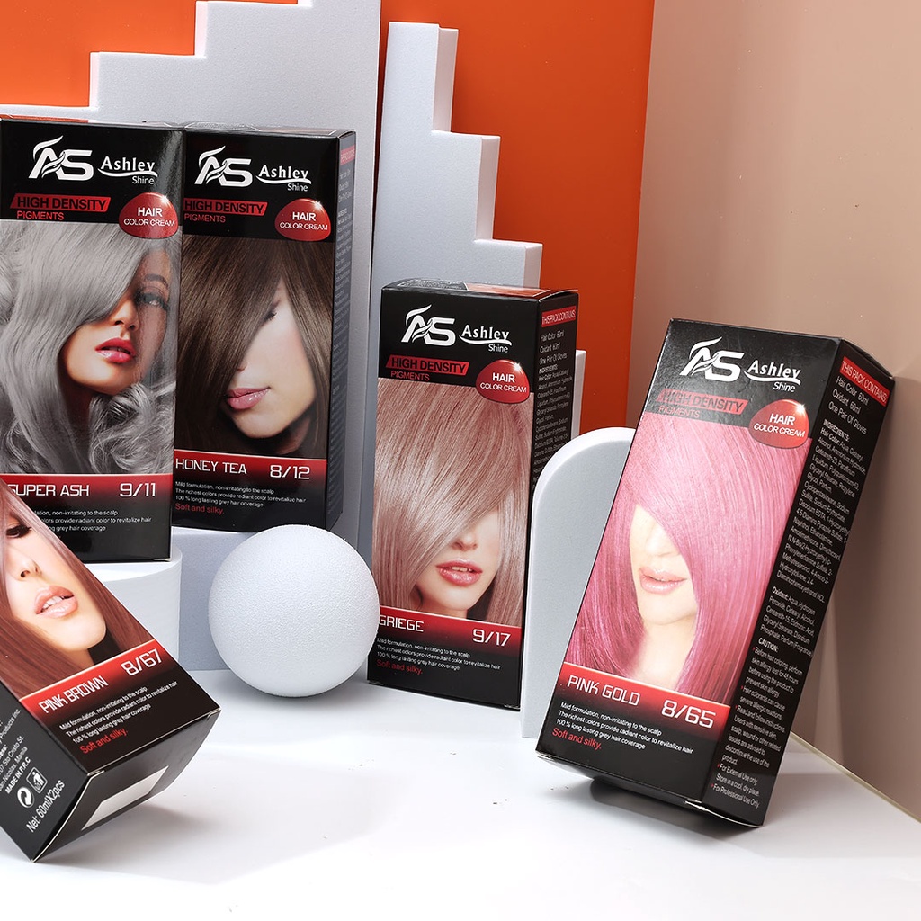 Ashley Shine Bio Keratin Hair Color Cream + Oxidizer 60ml High Density Pigments Ash Pink Gold Brown