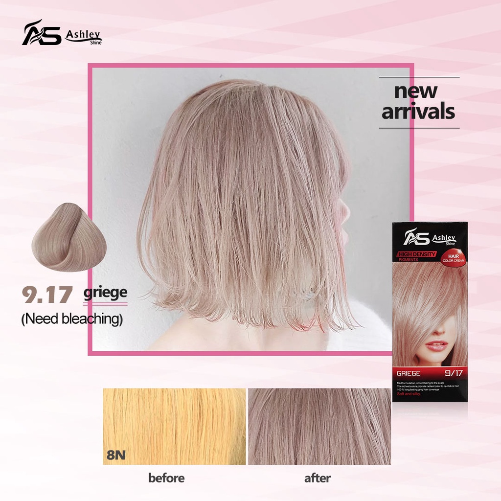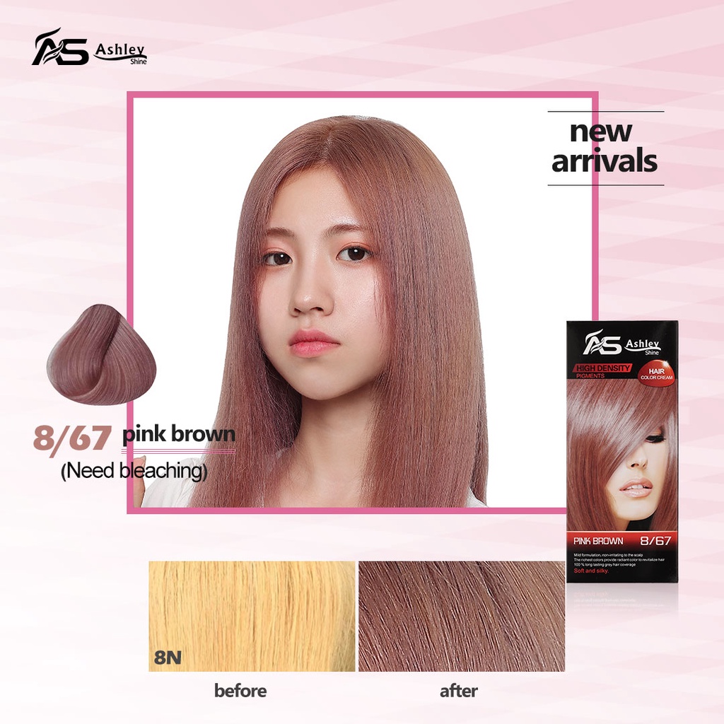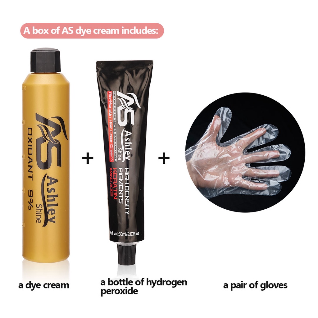 Ashley Shine Bio Keratin Hair Color Cream + Oxidizer 60ml High Density Pigments Ash Pink Gold Brown