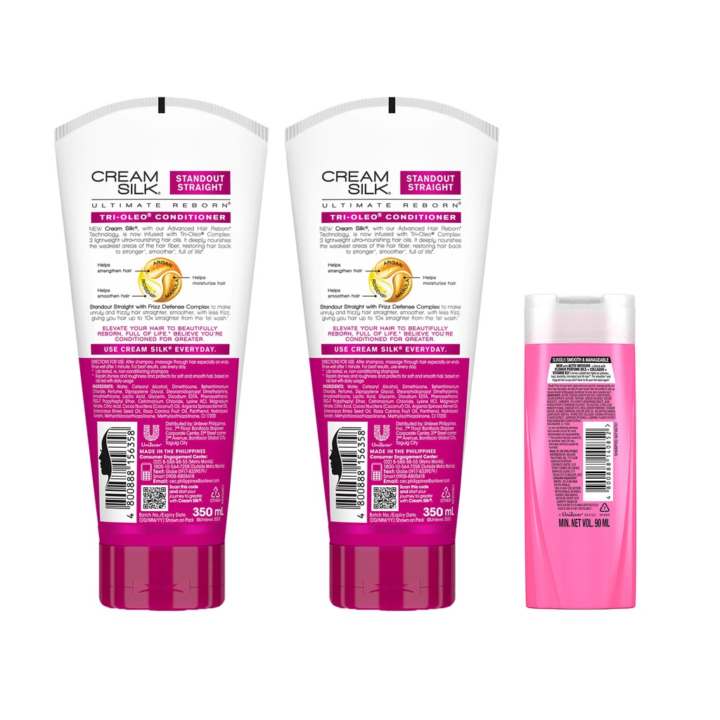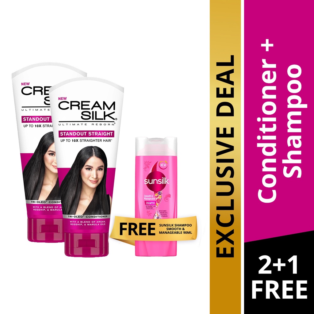 Cream Silk Straight 350ml Pack of 2 with Free Sunsilk Smooth 90ml