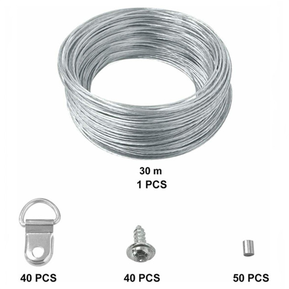 Hanging Picture Wire Rope Hanging Picture Mirror Frame Hooks Hangers With Screws + 30M Wire Rope Hanging Picture Accessories Set Aluminum Buckle Set