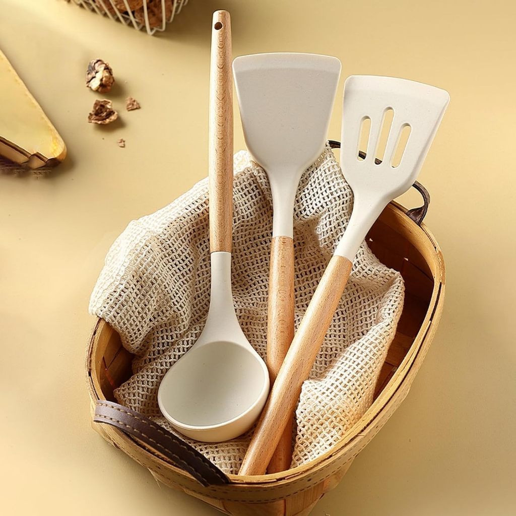 Silicone Non-Stick Cooking Shovel Spatulas, Soup Spoon Food Grade Anti-scald Utensils 3Pcs Set
