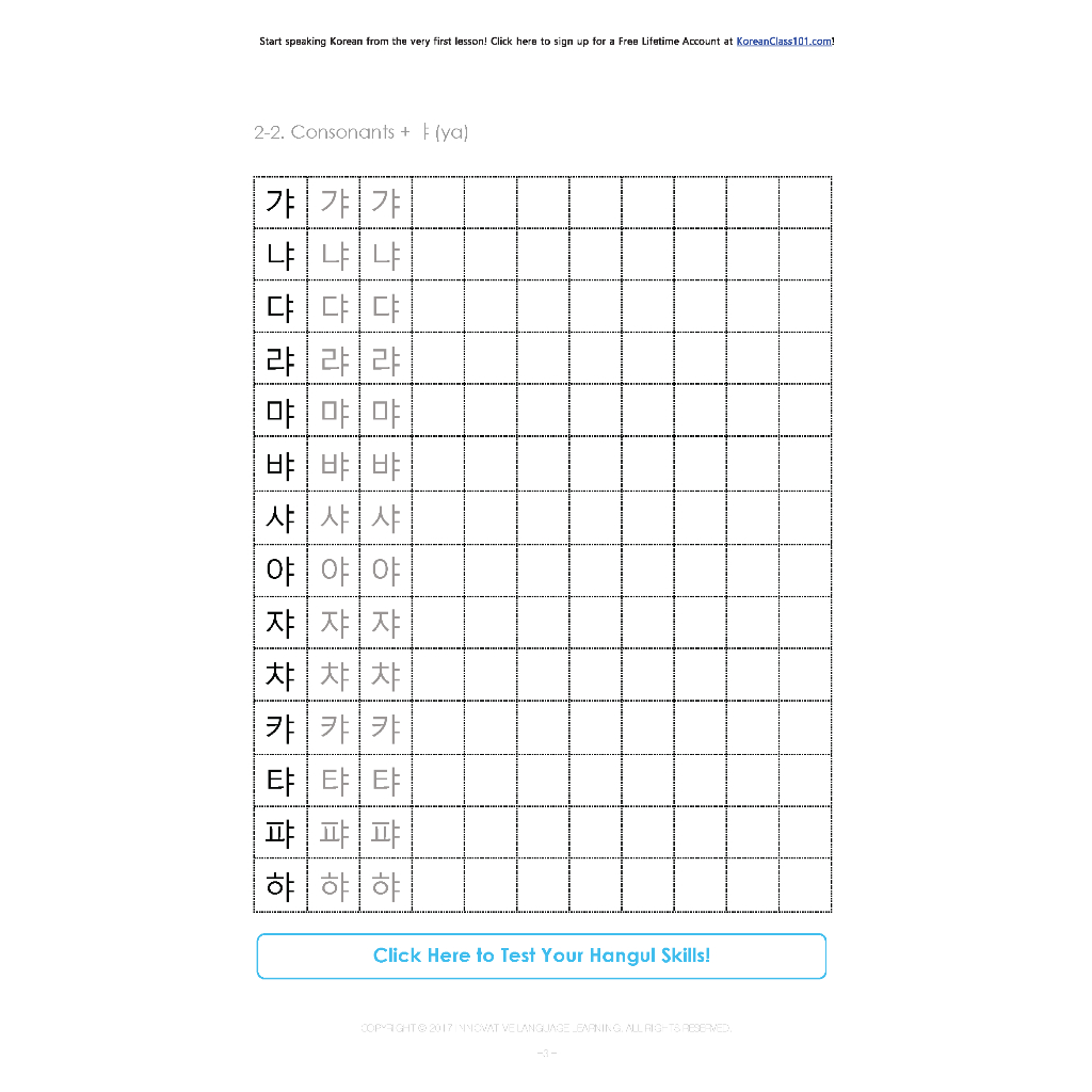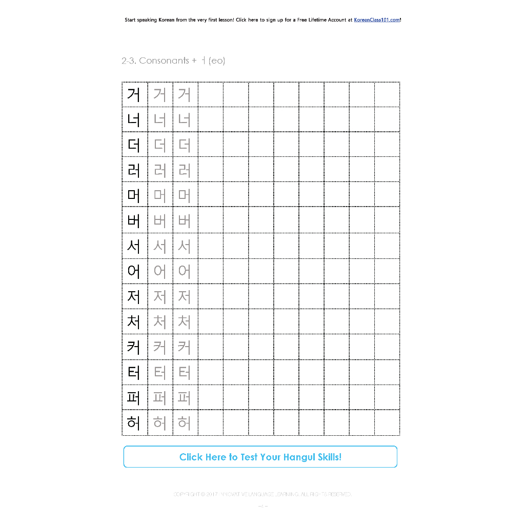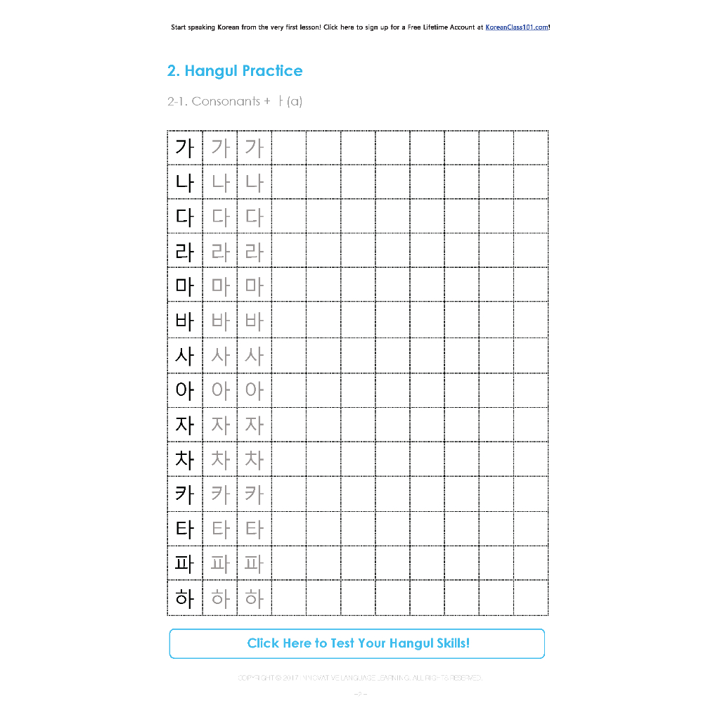 Hangul Practice Worksheet
