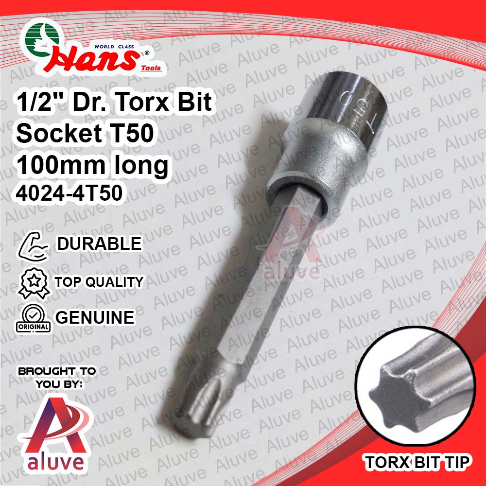 Hans 1/2" Drive Torx Bit Socket T50 100mm long 4024-4T50