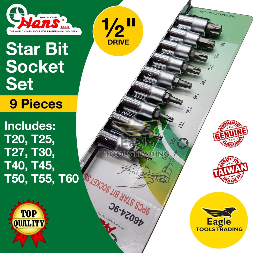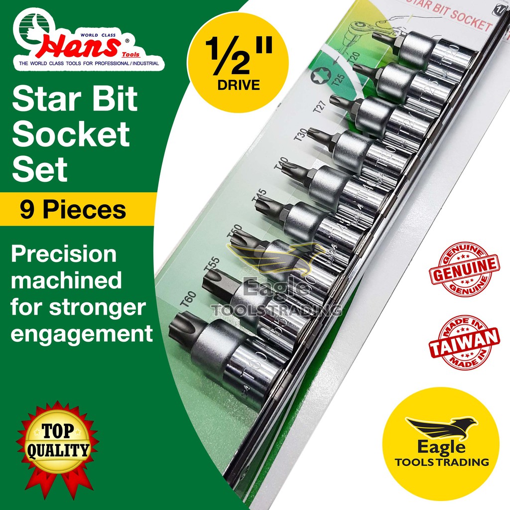 Hans 1/2 inches Star Bit Socket Set 46024-9C Torx Bit Socket | external star bit socket