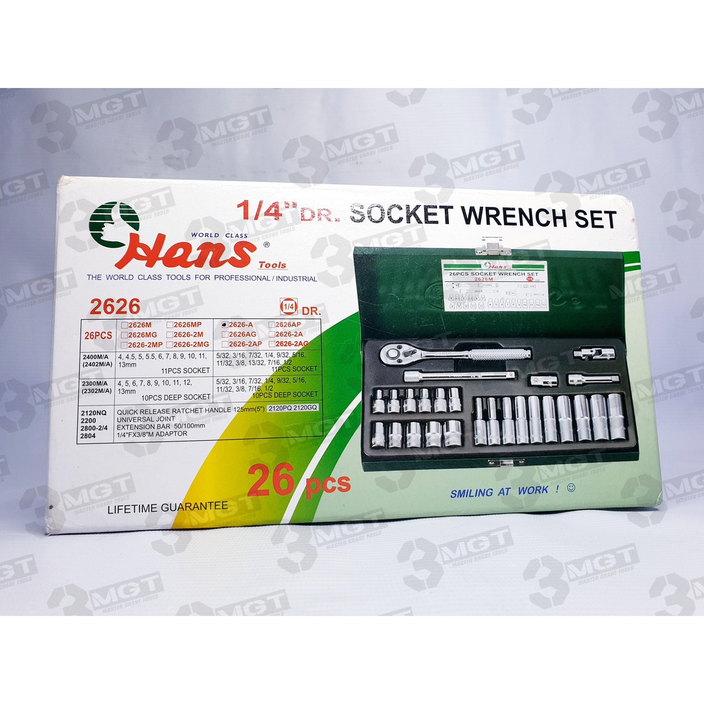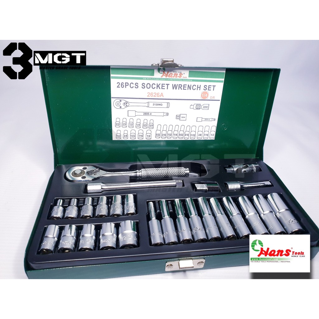 Hans 26 Pcs. 1/4" Drive Socket Wrench Set SAE