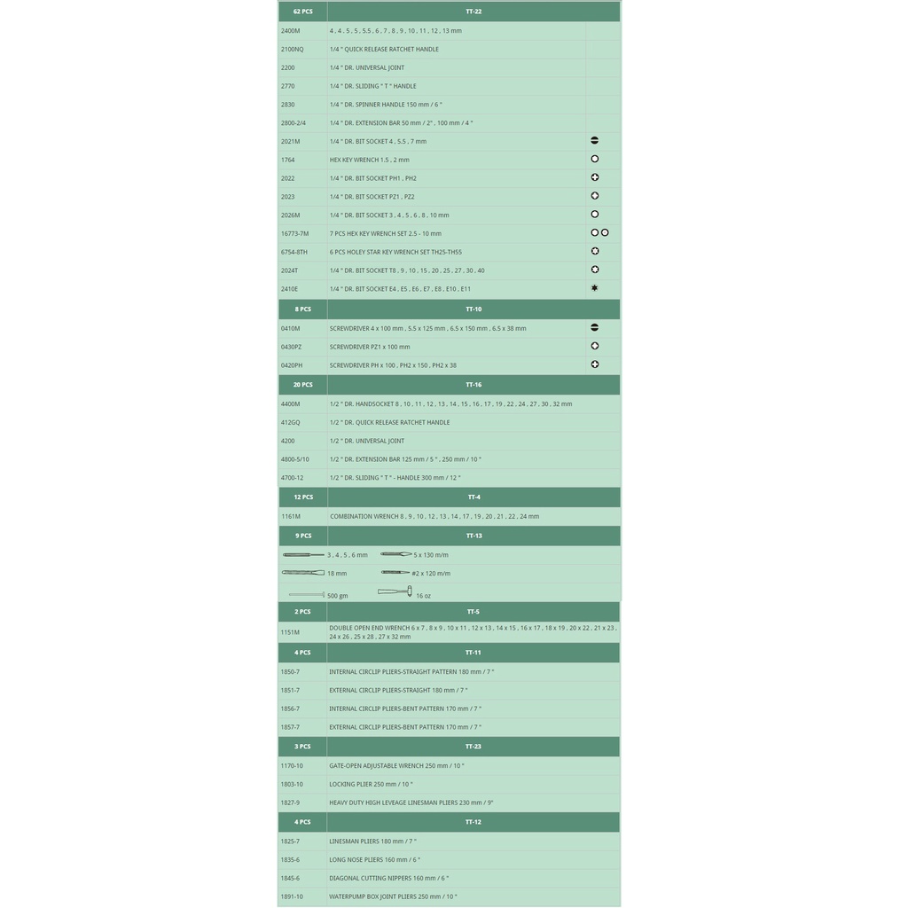 Hans Tools GTT-134 Tool Set with Individual Trays 134pcs. (Black/Green)