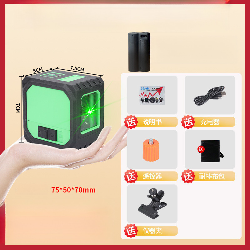 Hansheng 2-Line Green Light Mini Small Household Laser Level High-Precision Strong Light Thin Line Portable Flat Charging Electric