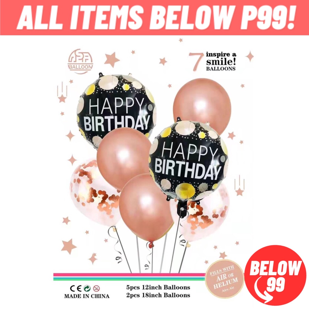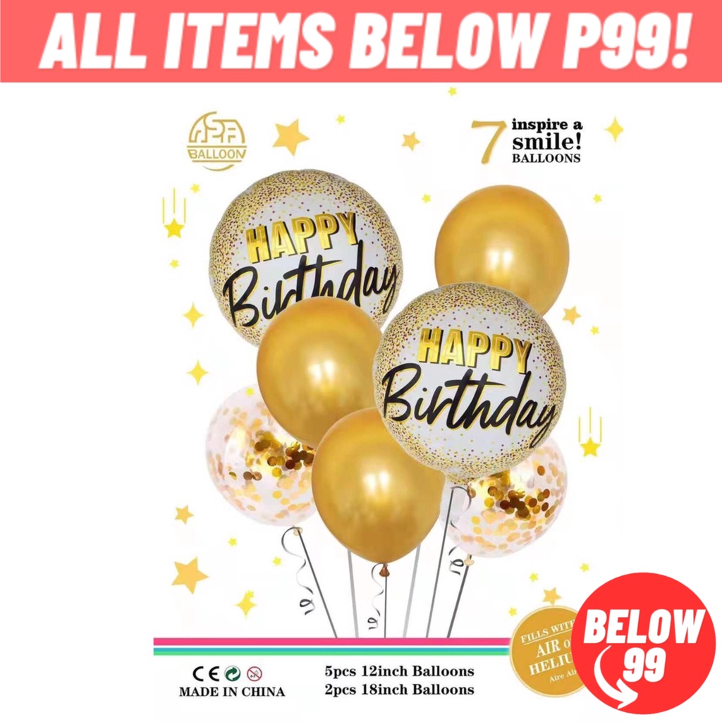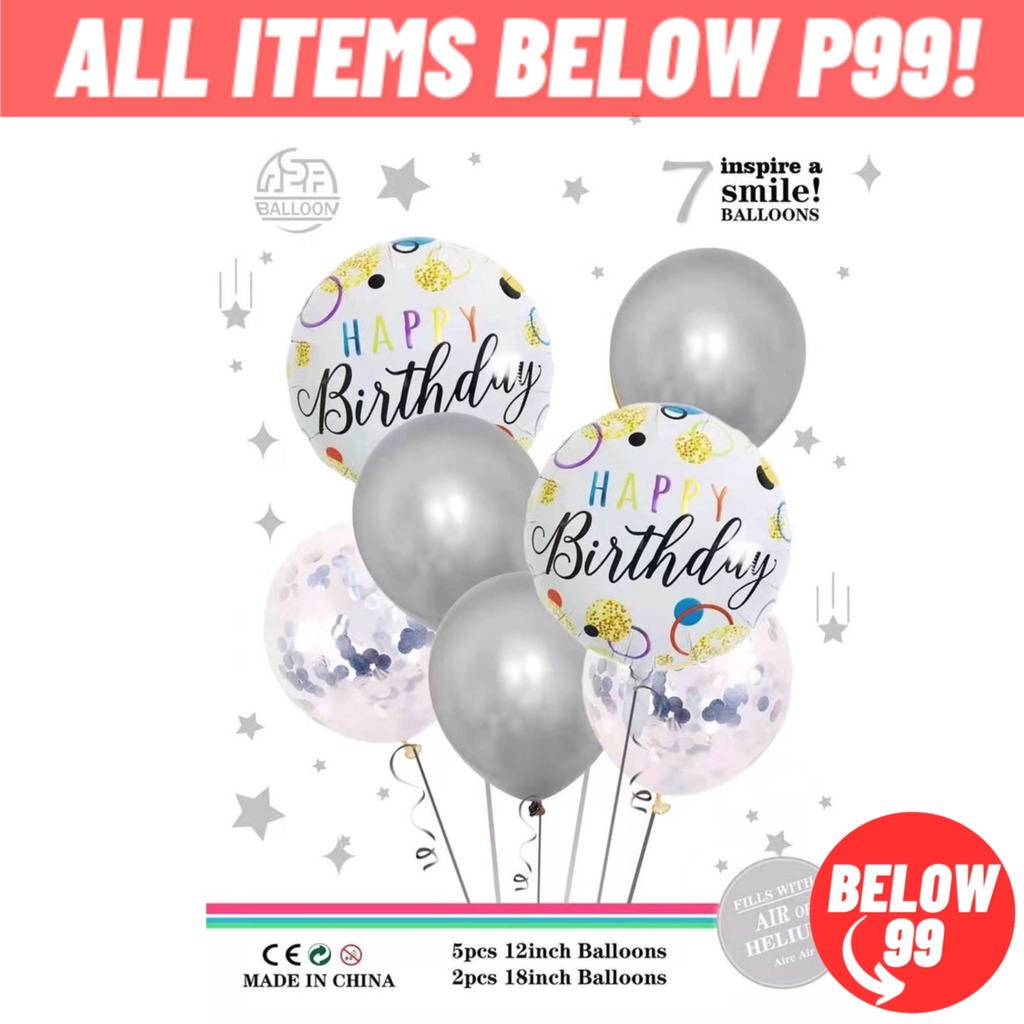 Happy Birthday Balloon Set 7 in 1 Metallic Balloon 12 Inches Confetti Balloon Happy Birthday Foil