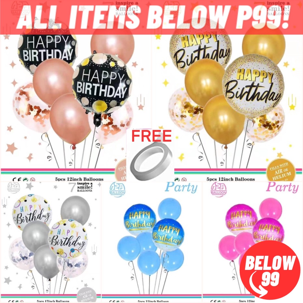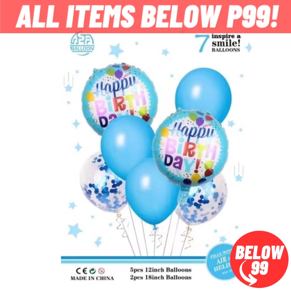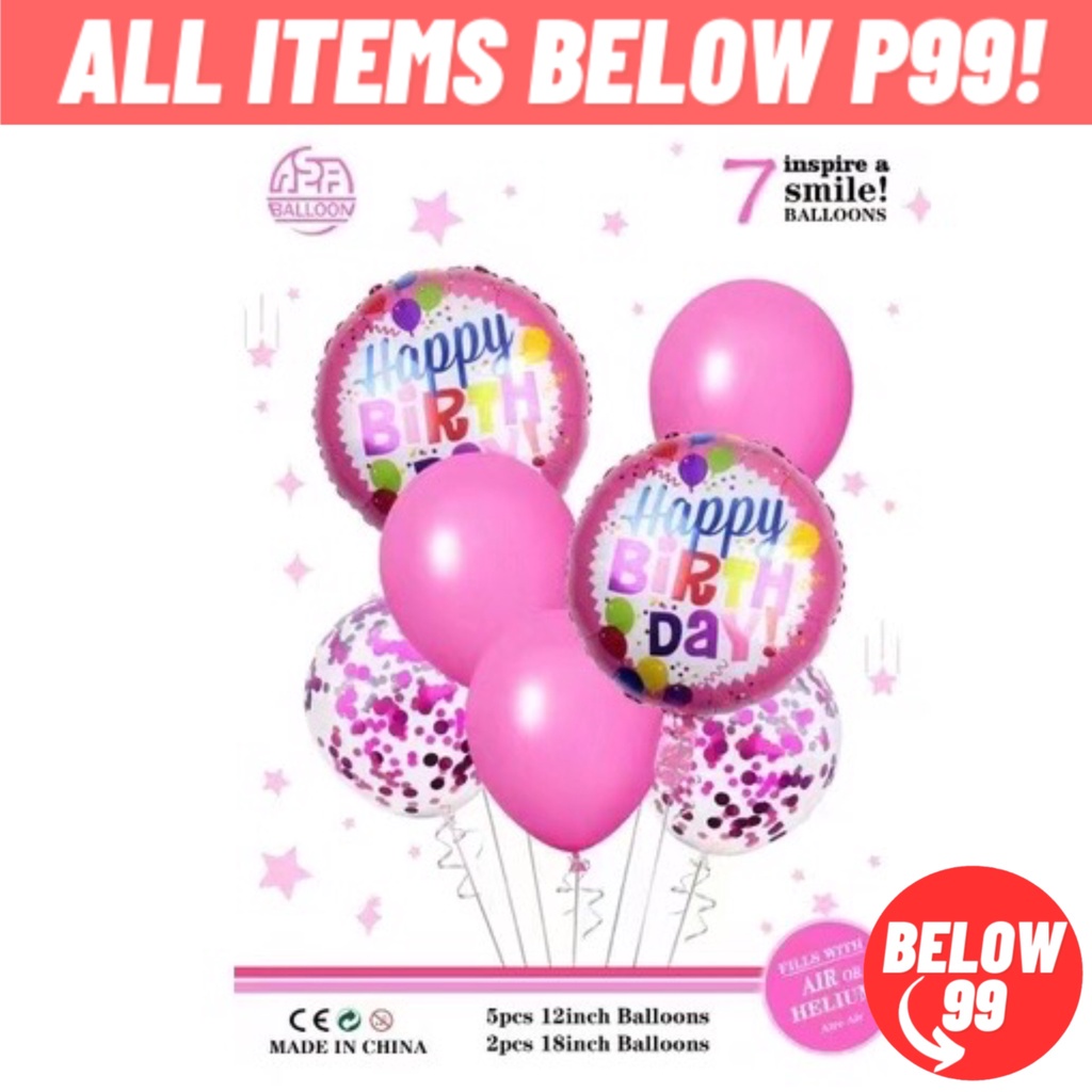 Happy Birthday Balloon Set 7 in 1 Metallic Balloon 12 Inches Confetti Balloon Happy Birthday Foil