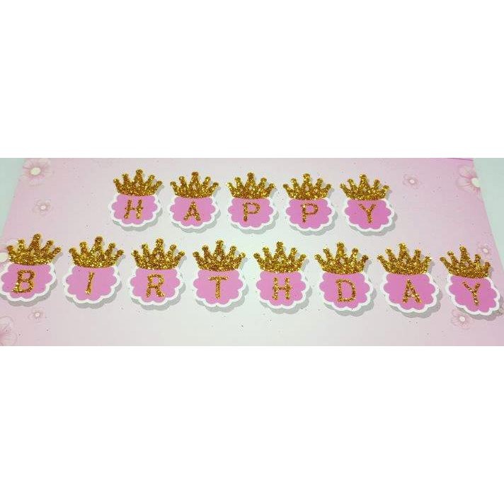 Happy Birthday Banderitas Crown design with Glitters Banner Party Decor