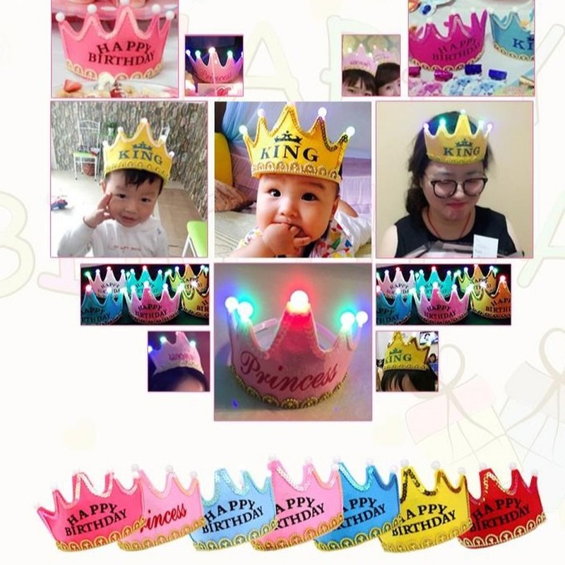 Happy Birthday Party Crown Hats Princess Light-Up LED Blinking Flashing Headbands Party Favors Hats
