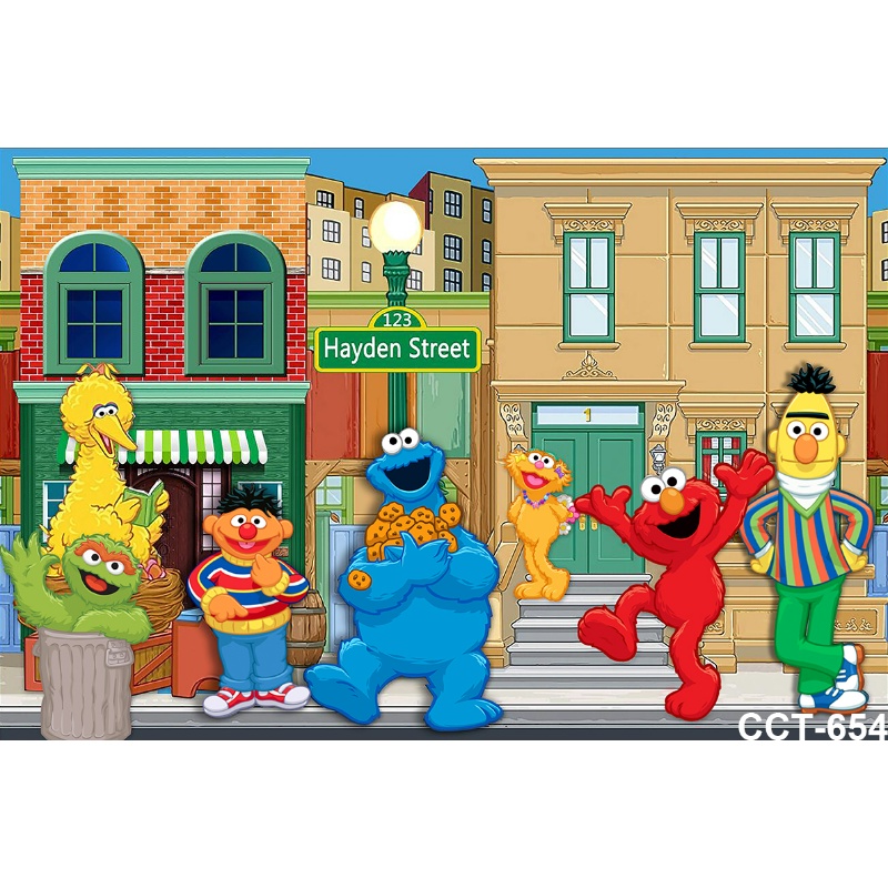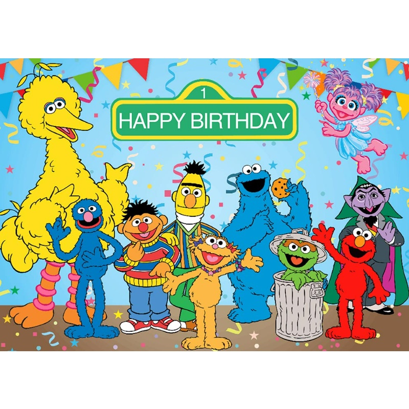 Happy Birthday Photography Backdrops Sesame Street Elmo World Party Bricks Wall Photo Background for Pictures Customize