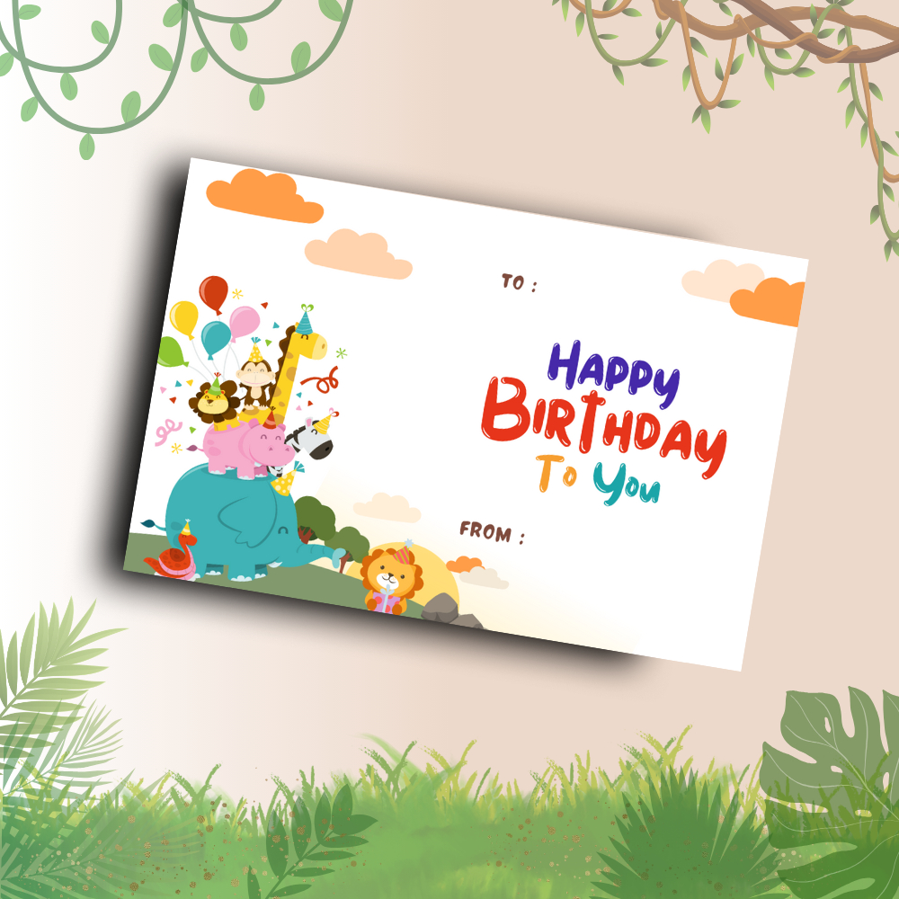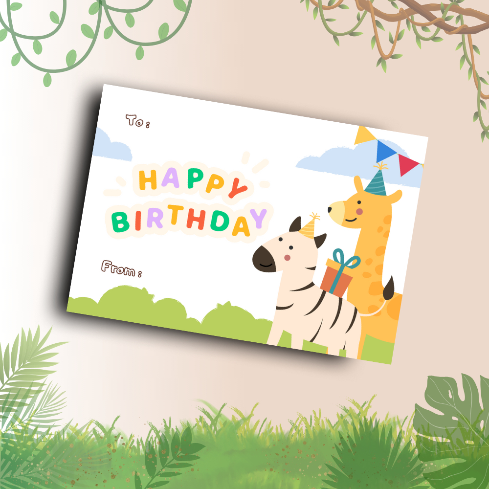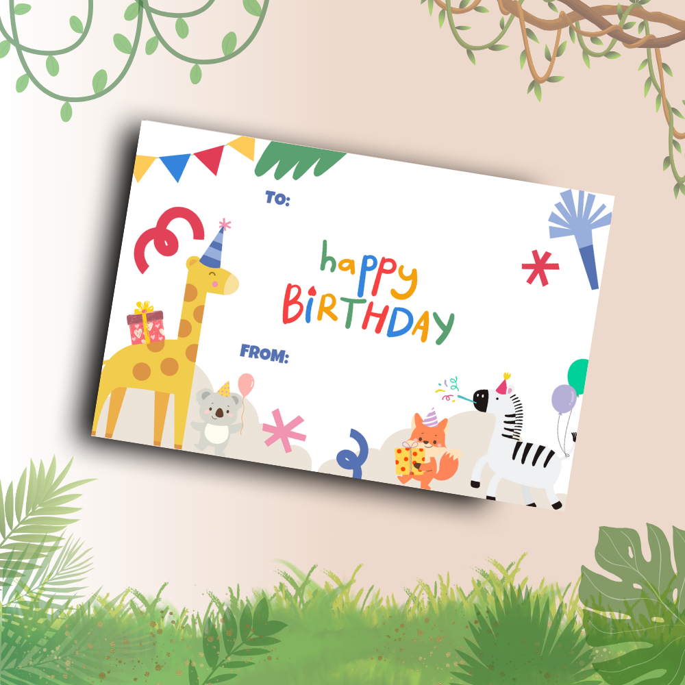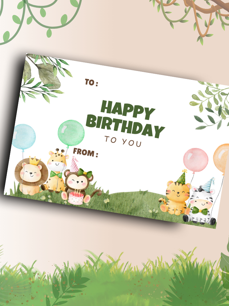 Happy Birthday Safari Theme | Gift Card | 5 pieces per pack