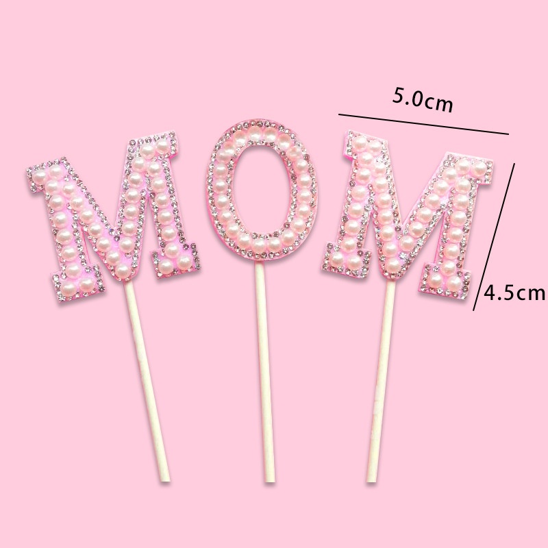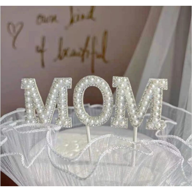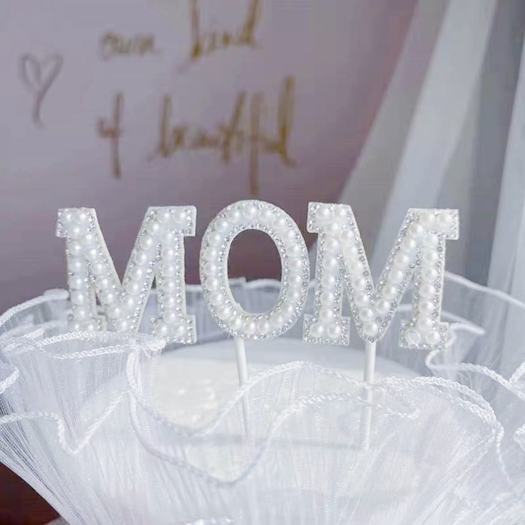 Happy Mother's Day Pearl Cake Topper Beautiful Ribbon Cake Decoration Pearl Mother Birthday Cake Topper Decoration Set